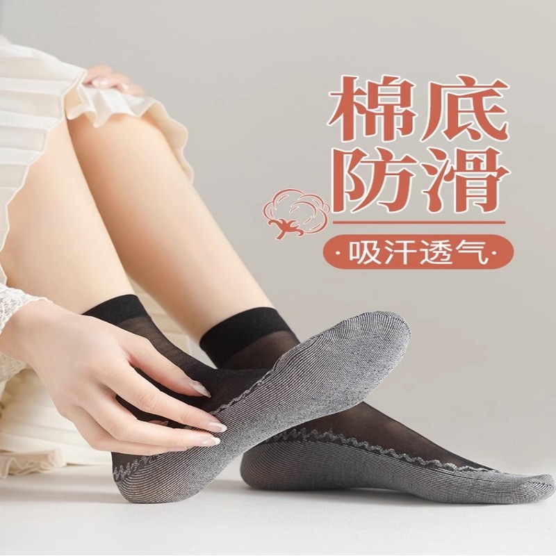 棉底丝袜女短袜防臭春秋夏季薄款水晶短防勾袜子中筒袜女纯棉防滑