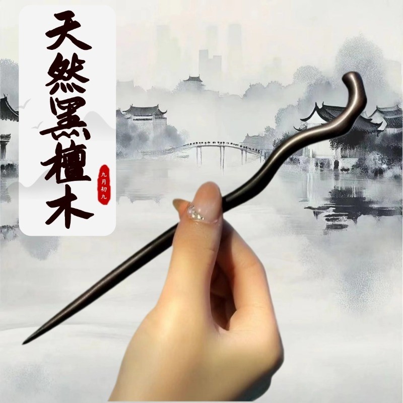 黑檀木发簪女古风新中式高级感现代日常木簪加长簪子发饰木头鹿角