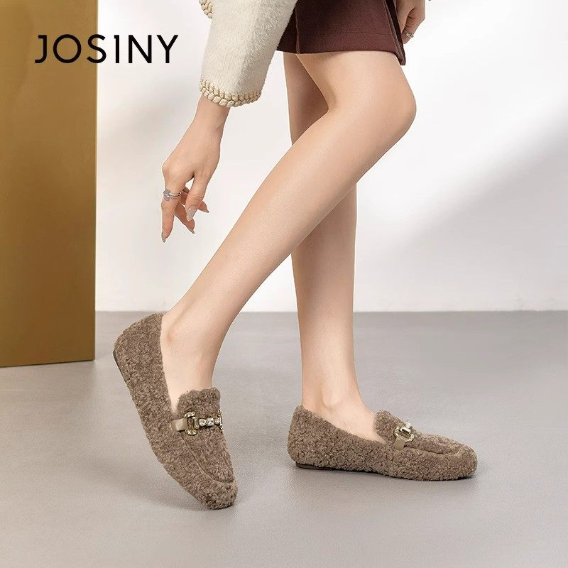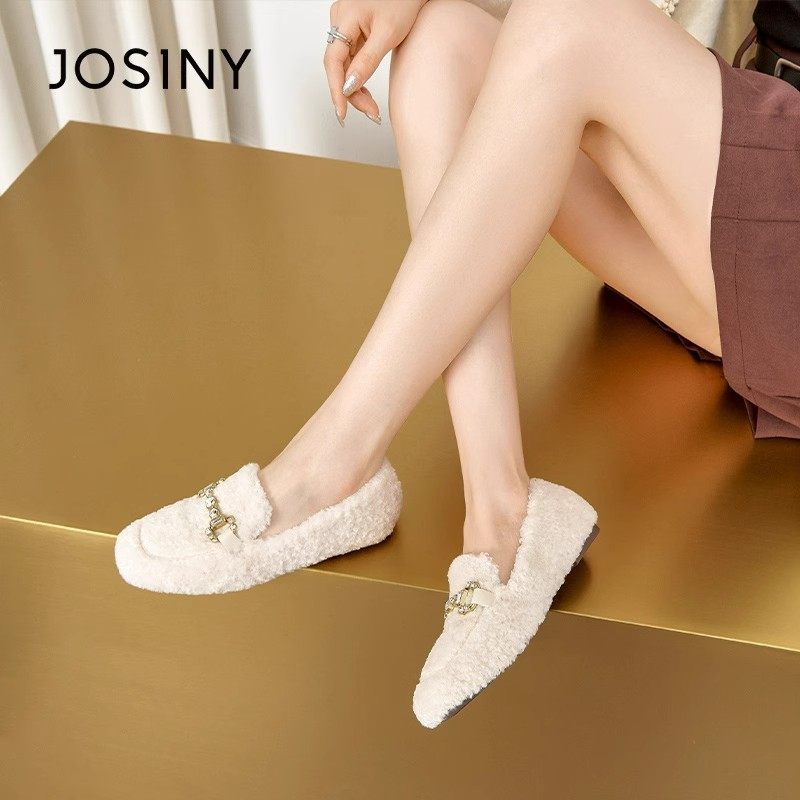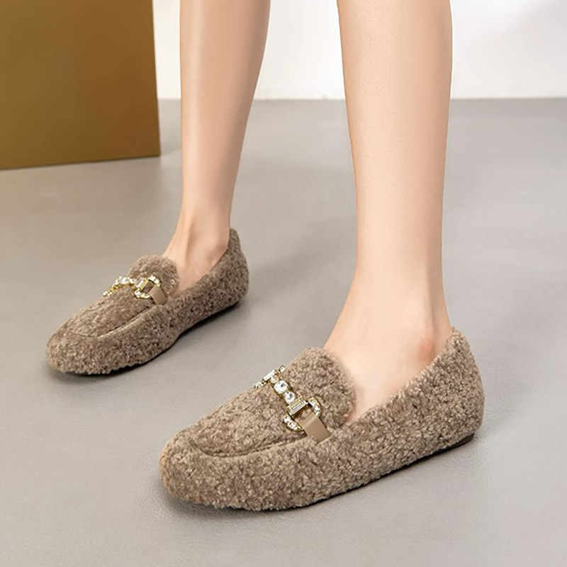 卓诗尼毛毛鞋女秋冬新款女鞋平底防滑豆豆鞋女加绒乐福鞋保暖棉鞋
