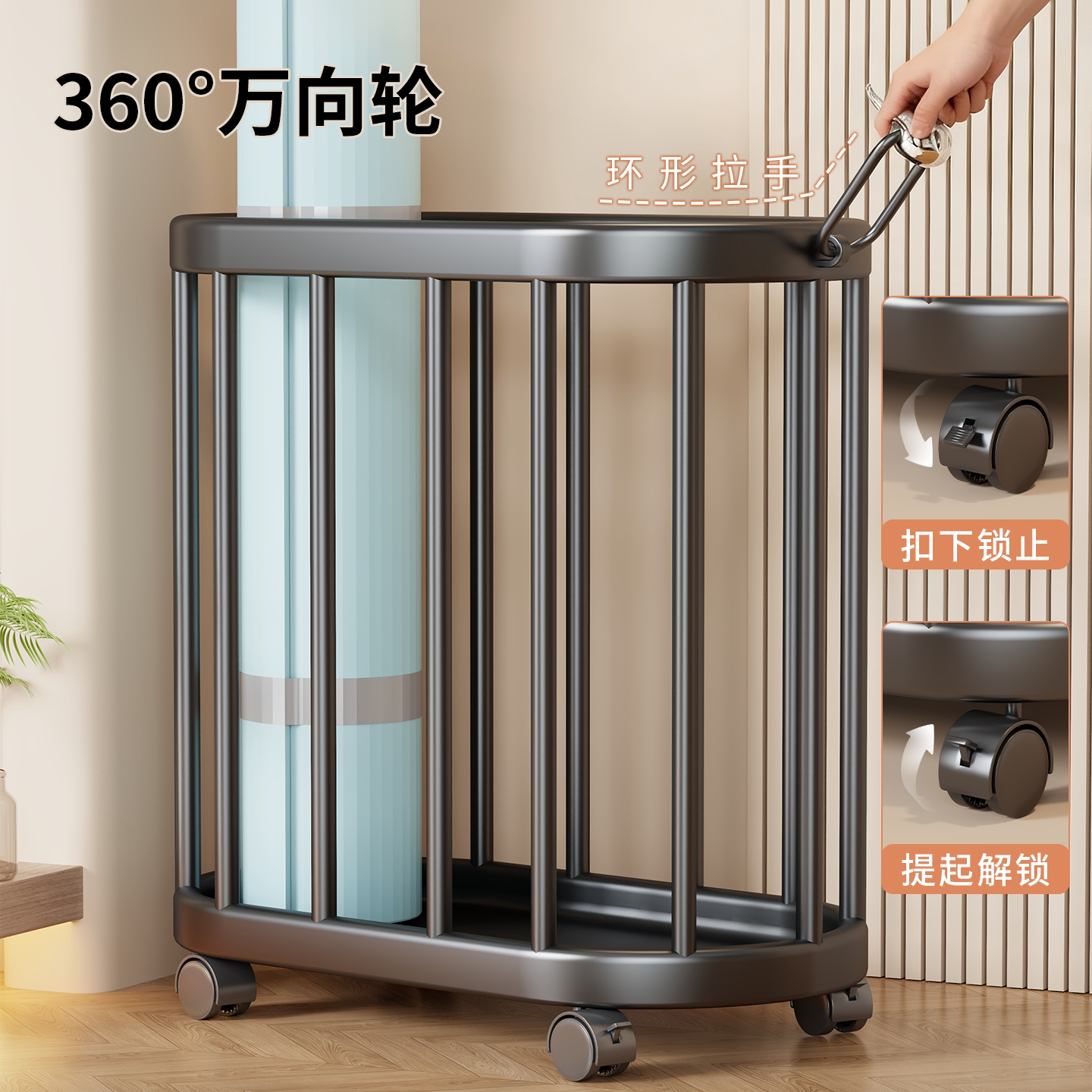 瑜伽垫收纳筐带轮家用运动工具泡沫滚轴整理神器健身器材置物架子