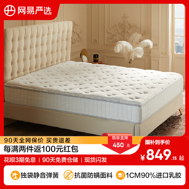 网易严选乳胶床垫独袋弹簧家用席梦思床垫天然乳胶厚垫软垫1.8米