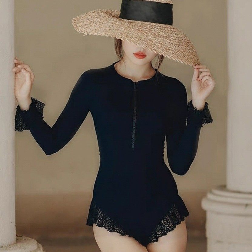 2026时尚新款长袖小平角连体小胸性感修身保守显瘦温泉少女游泳衣