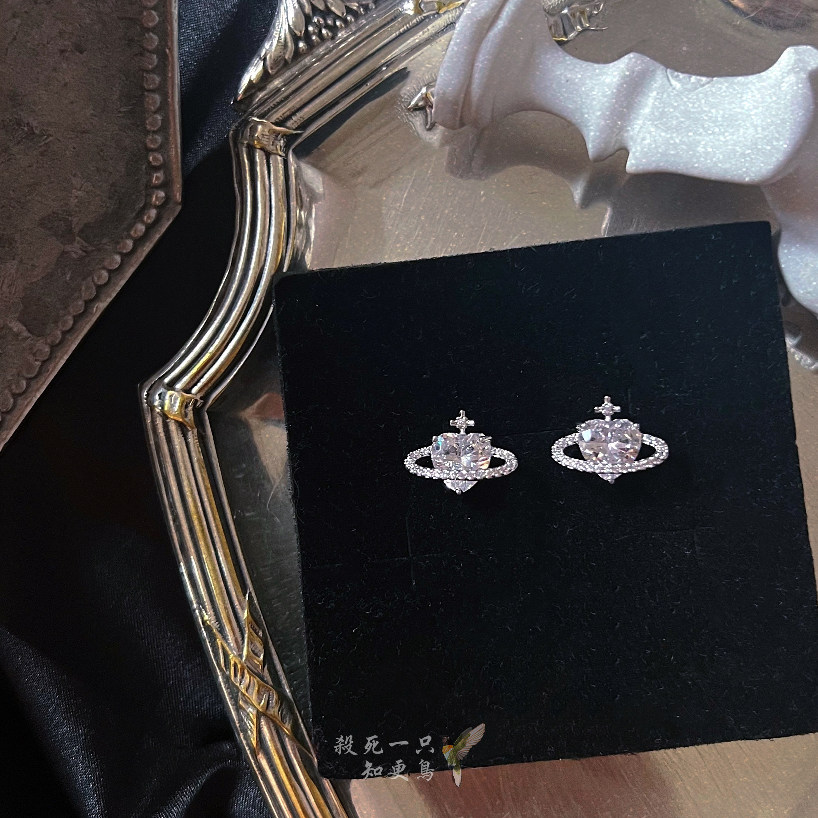 知更鸟|一颗土星 甜酷少女小众冷淡风简约银色星球锆石耳钉耳饰