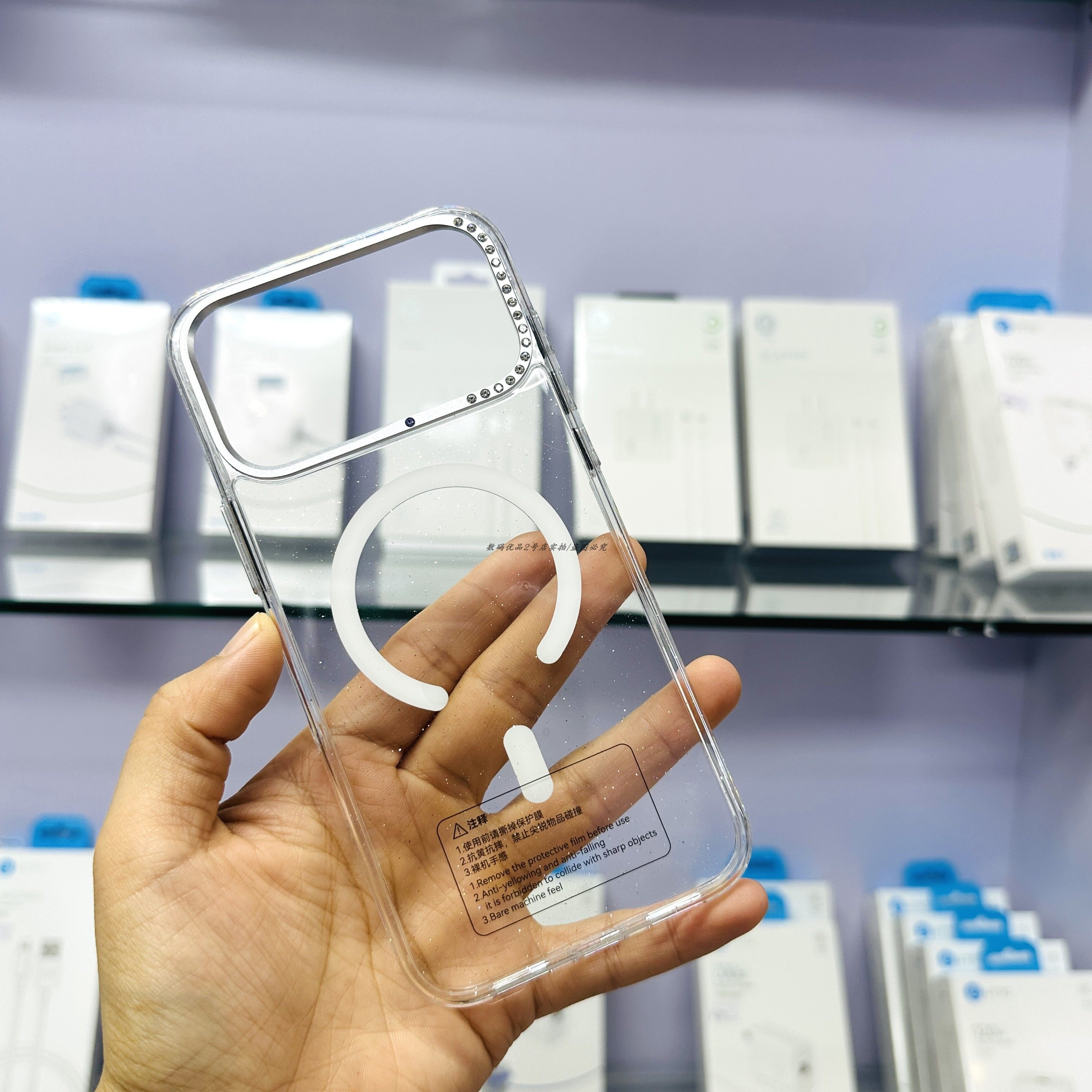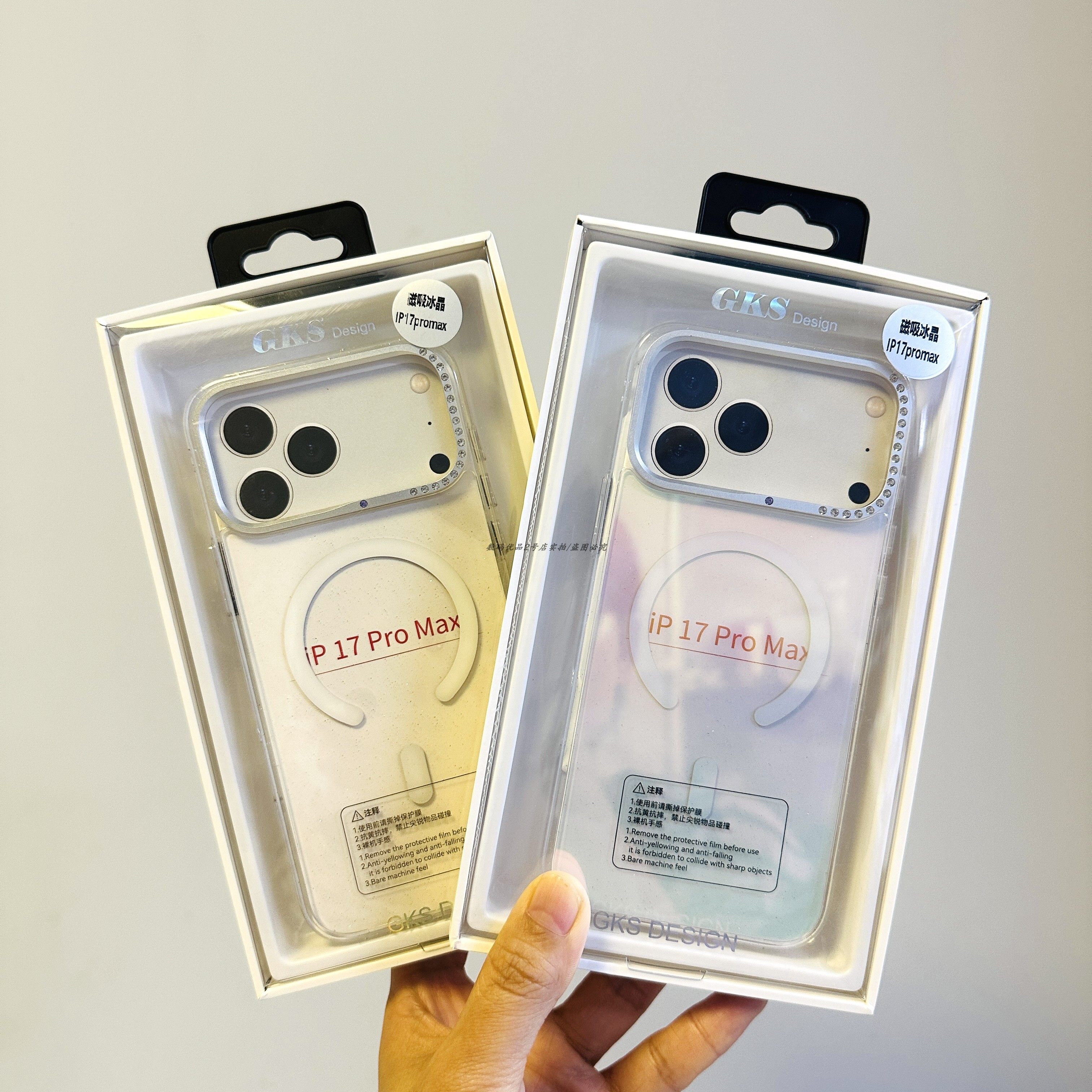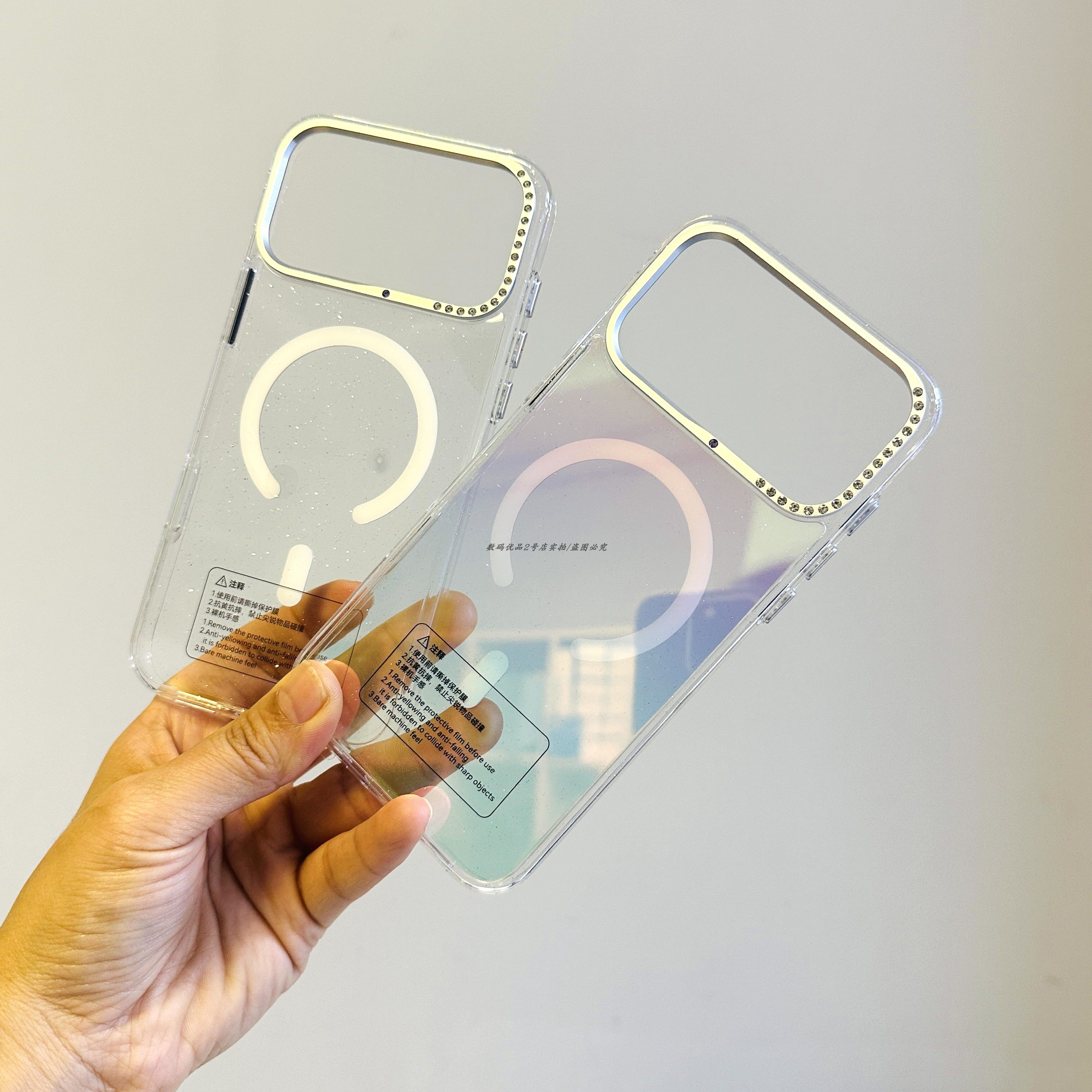 睿博冰晶磁吸手机壳适用于苹果17pro闪粉带钻保护壳抗氧化镭射壳k