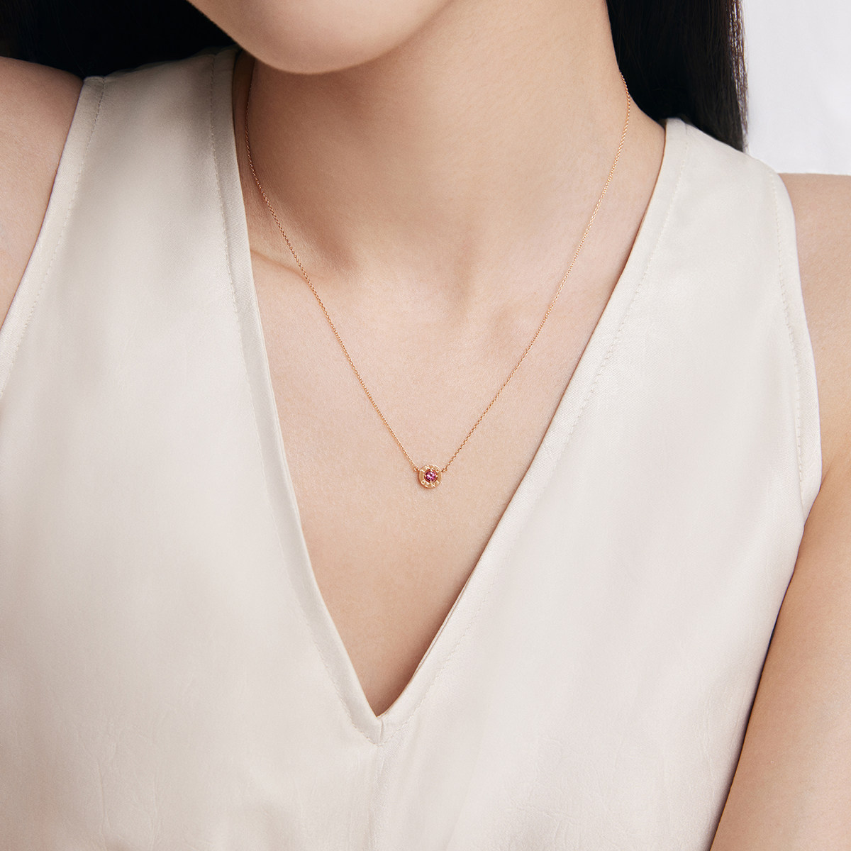碧玺甜甜圈项链 简约轻奢锁骨链
