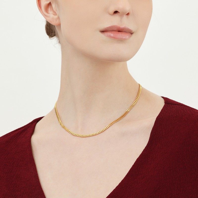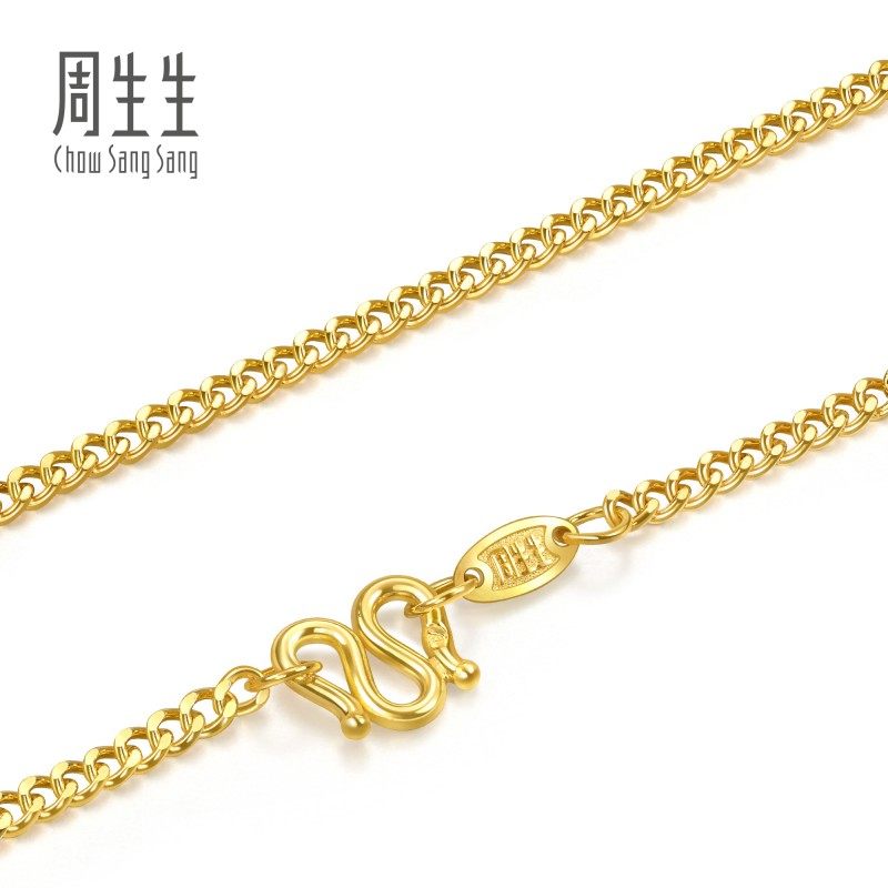 周生生爆闪黄金素链Essence永系列足金侧身链项链96001N