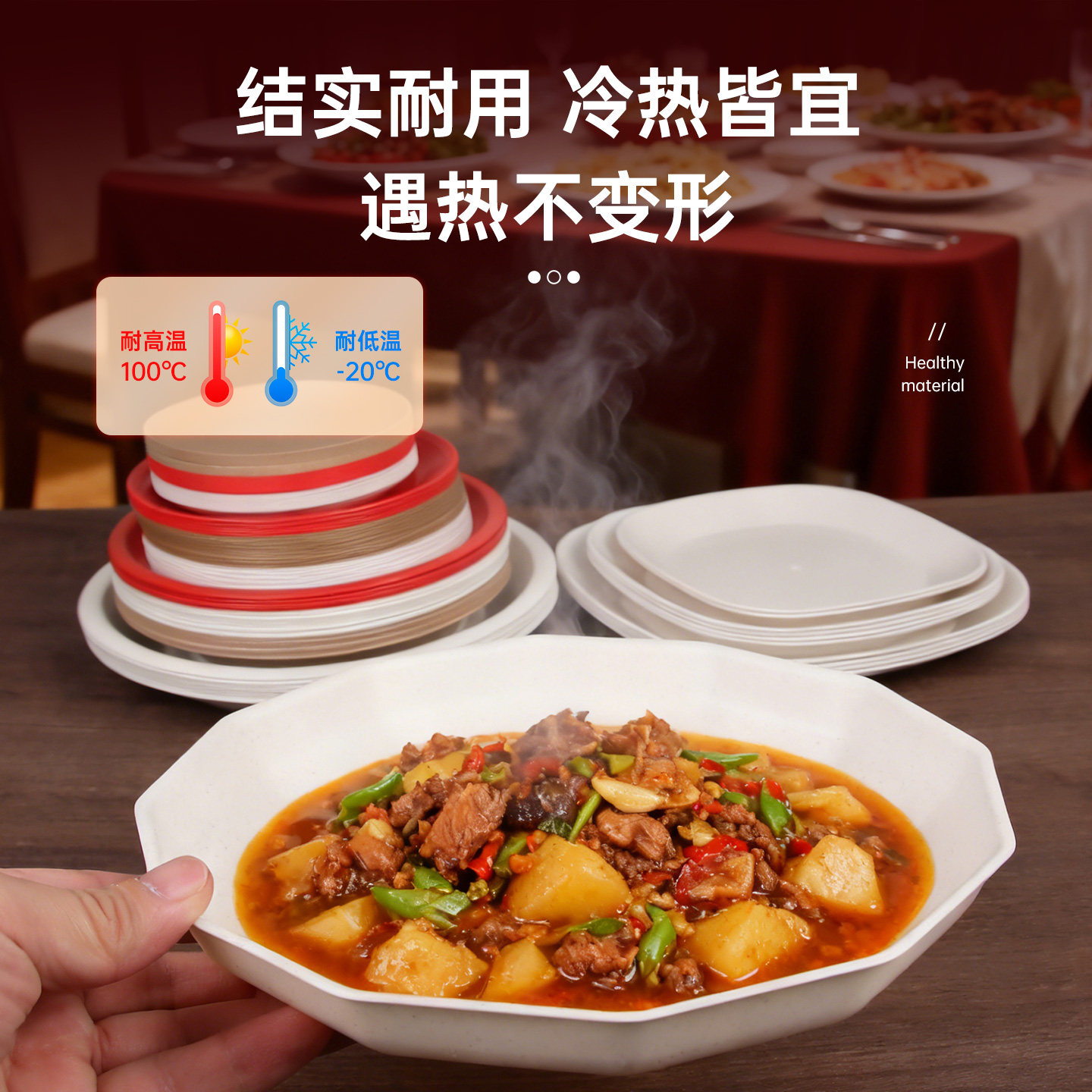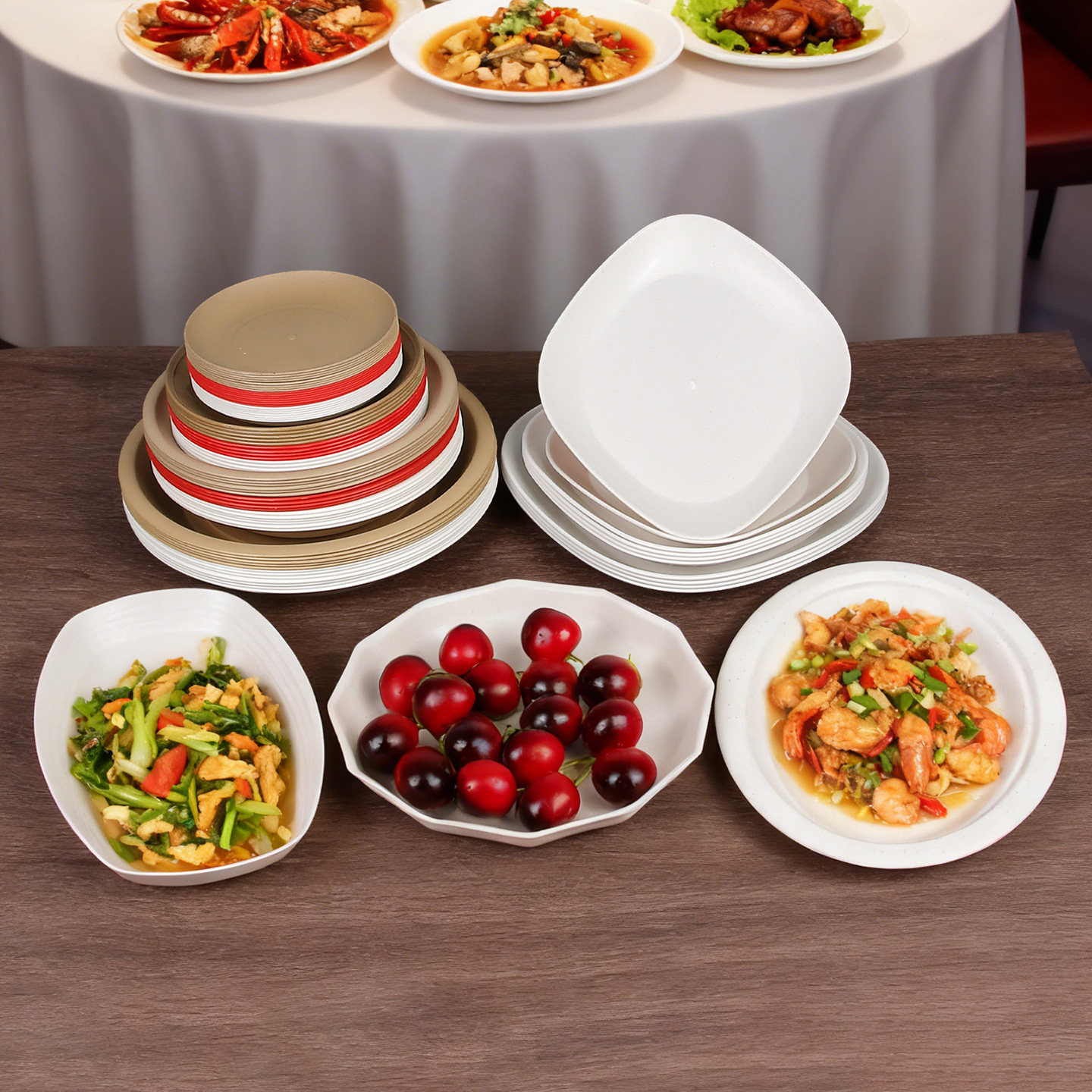 一次性餐盘碟子稻壳盘子加厚食品级耐高温烧烤盘商用家用用餐肠粉