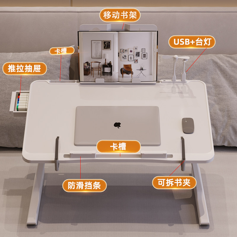 可升降折叠床上小桌子简约宿舍学生写字床上书桌学习调节高度支架家用卧室坐地飘窗懒人笔记本电脑办公小桌板