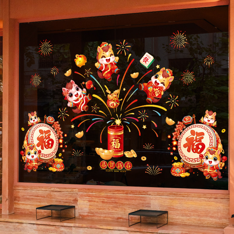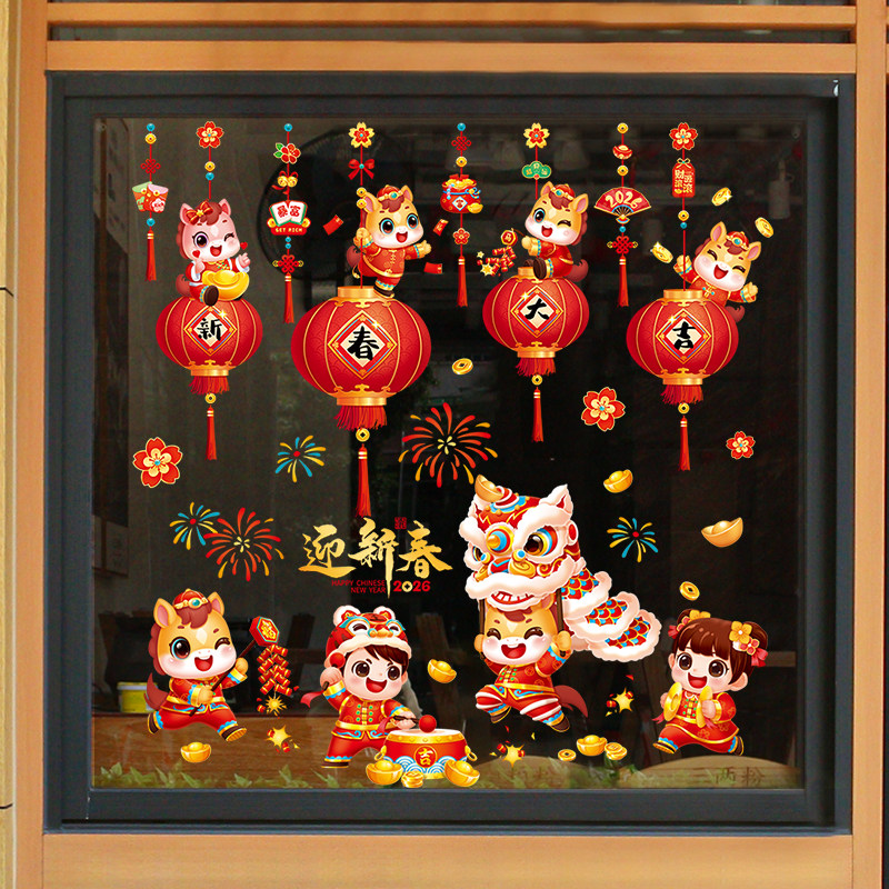 2026新年窗花马年装饰新款玻璃门贴纸静电橱窗贴春节氛围布置贴画