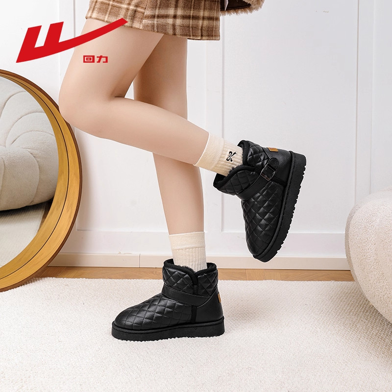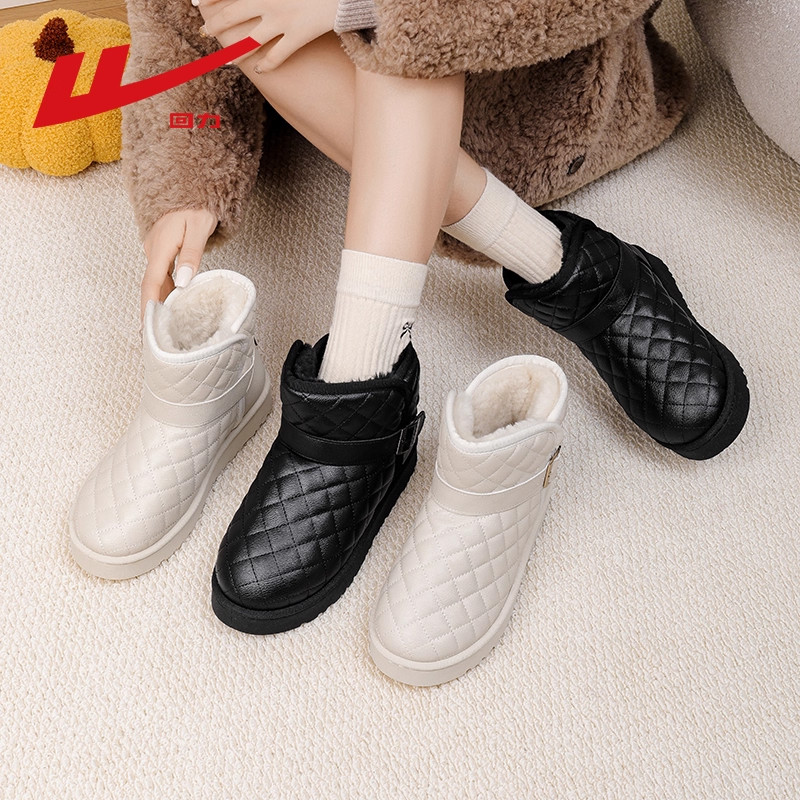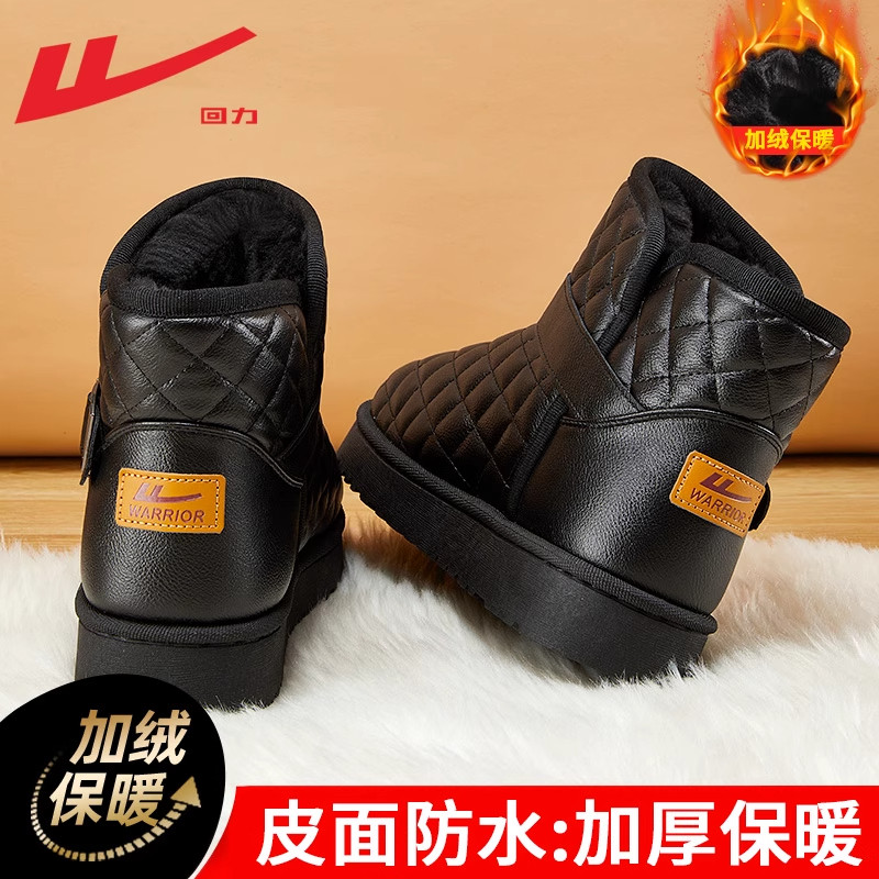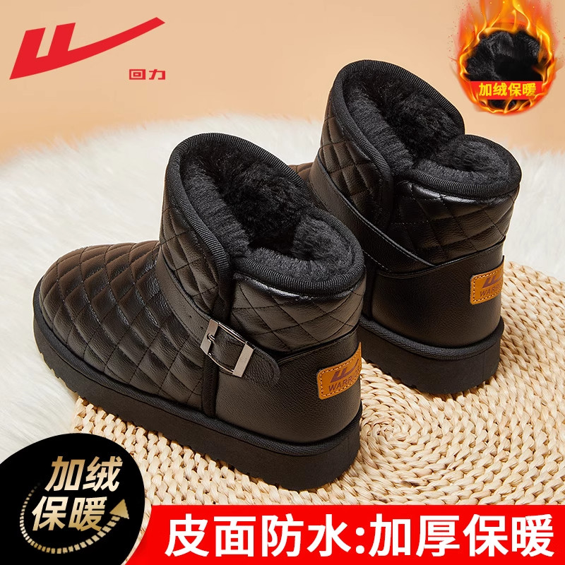 回力雪地靴女冬季2025新款加绒加厚面包鞋皮面保暖雪地棉鞋女防水
