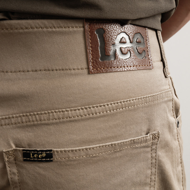 阿瞳牛社 Lee中腰宽松微锥牛仔裤男士高弹潮牌卡其色薄款2015036