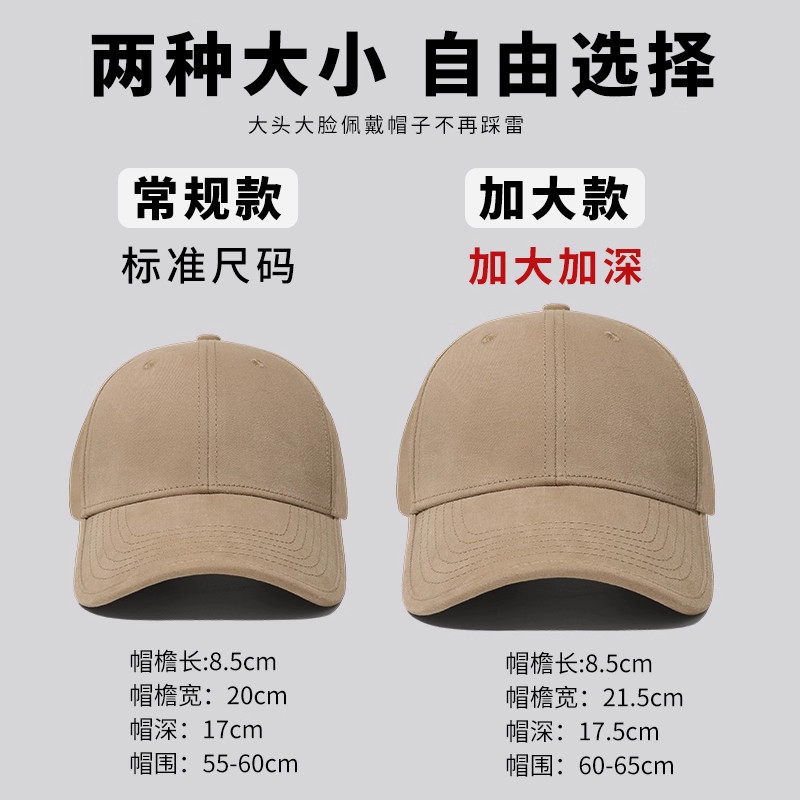 新款男士帽子大头围宽帽檐显脸小棒球帽女夏季硬顶黑色鸭舌帽男款