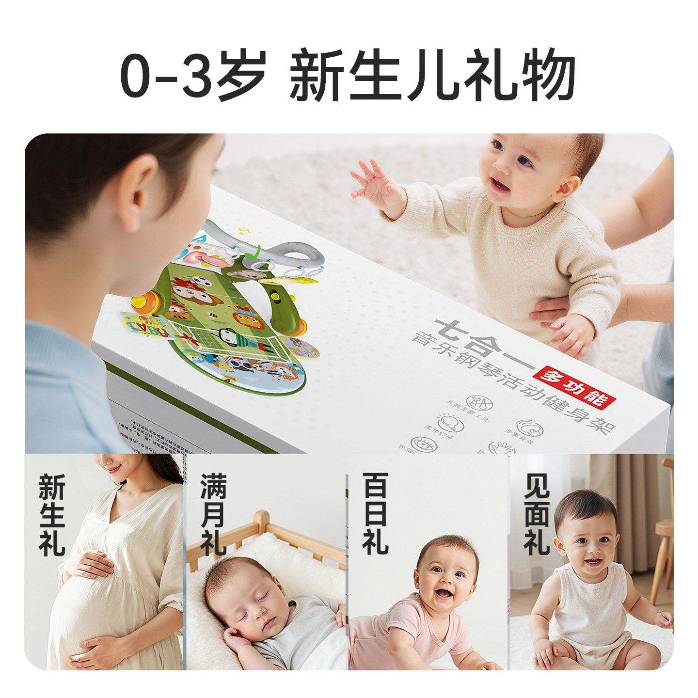 婴儿健身架脚踏钢琴新生儿的见面礼物盒0一1岁3个月6满月宝宝玩具