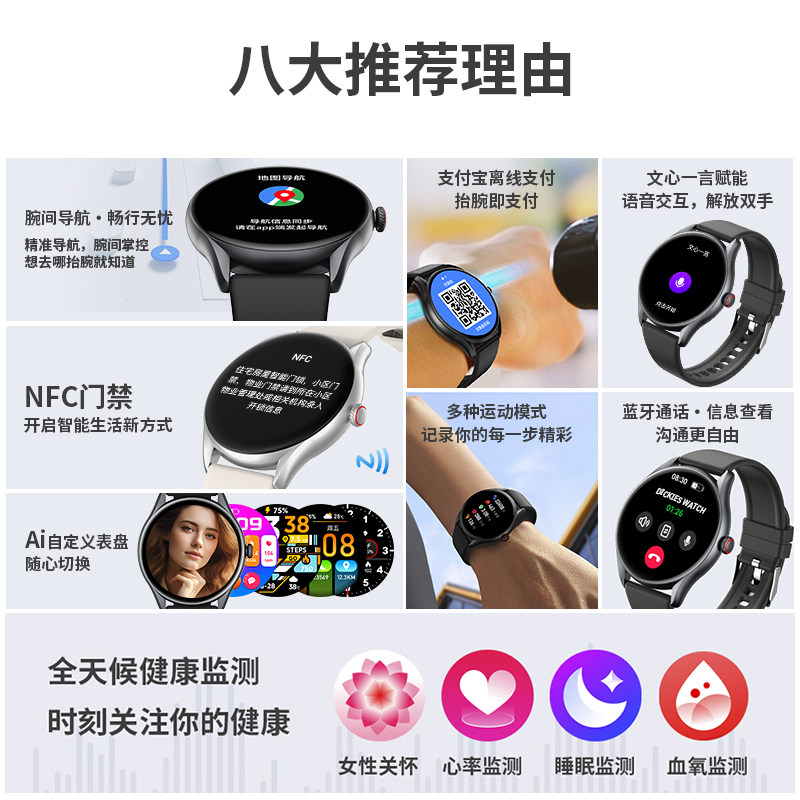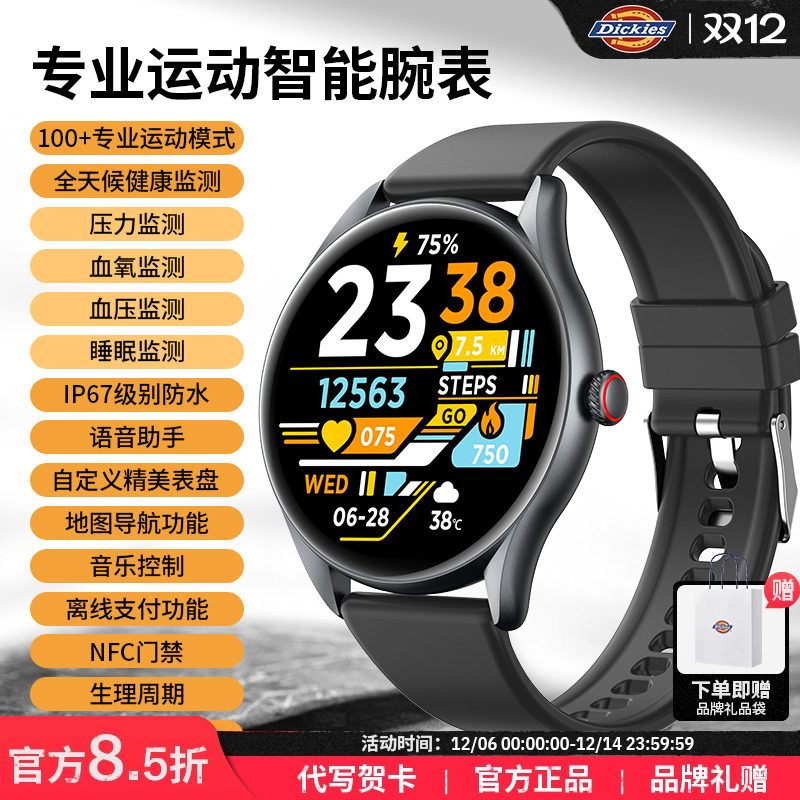 Dickies智能运动手表NFC蓝牙通话男女生手环心率睡眠监测跑步专用