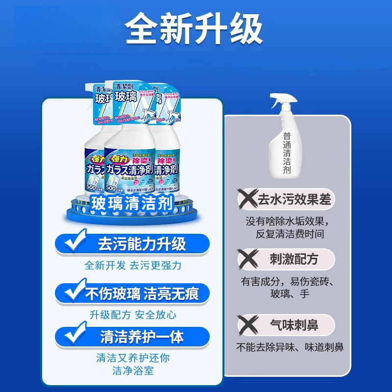 清洗擦玻璃水清洁剂家用窗户浴室卫浴淋浴擦窗户强力去污除垢神器