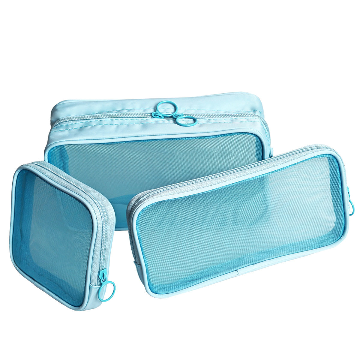 网纱化妆包洗漱收纳包便携式收纳袋整理包零钱笔袋证件袋口红网格