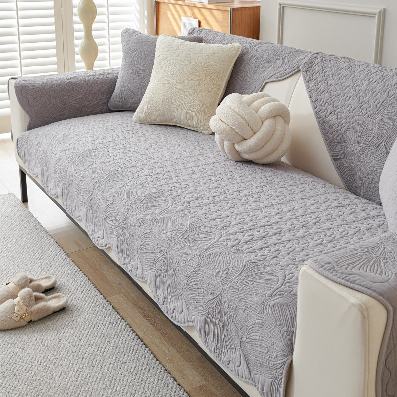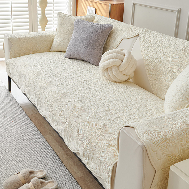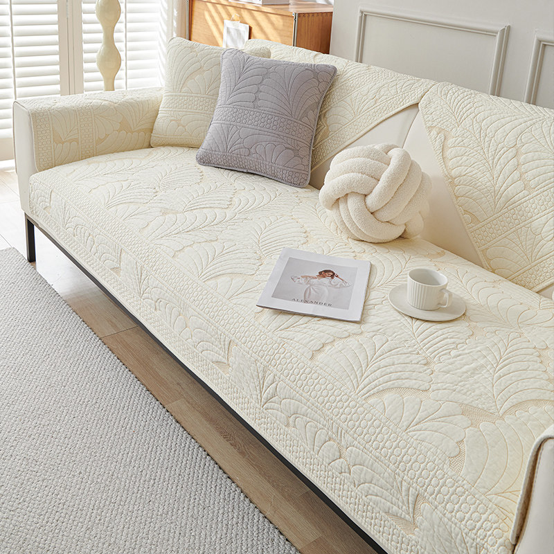 北欧绣花纯色沙发垫四季斜纹纯棉布艺防滑全棉坐垫通用现代沙发巾