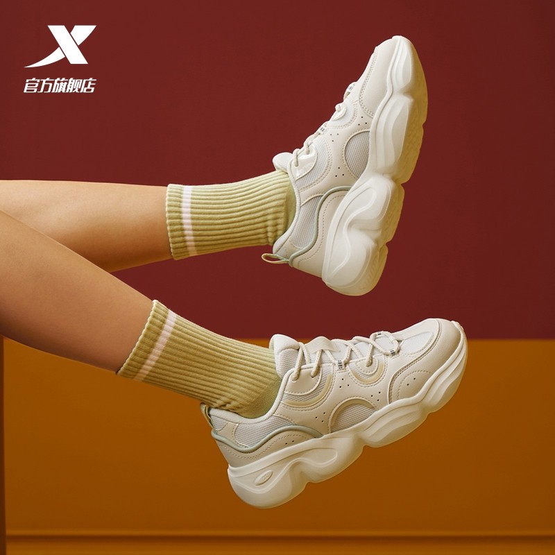 特步猫爪鞋女鞋冬季增高百搭运动鞋轻便休闲鞋老爹鞋975318320006