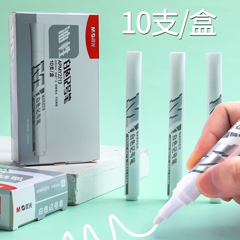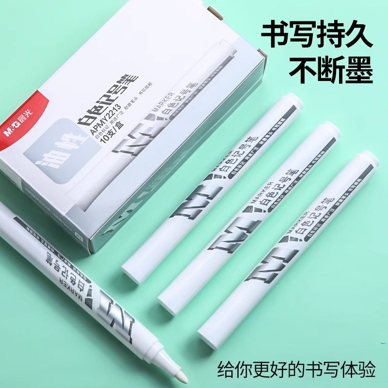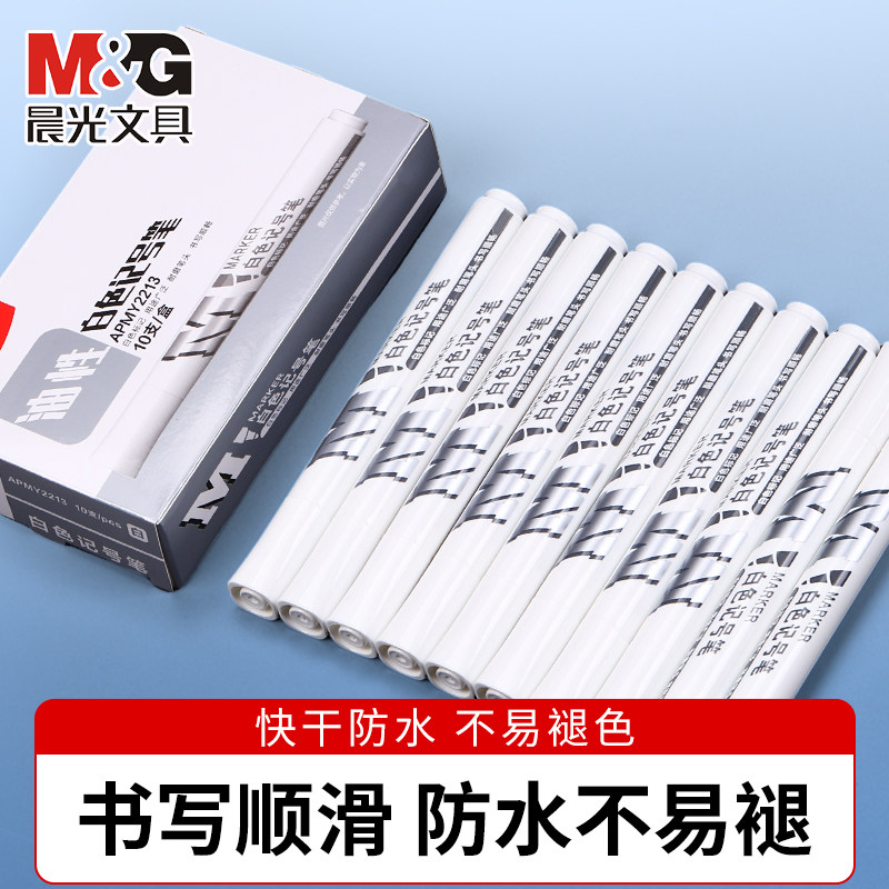 晨光白色记号笔防水粗头工业油漆笔大号轮胎美术绘画高光笔学生用马克油性签字笔工地物流办公标记用大头笔