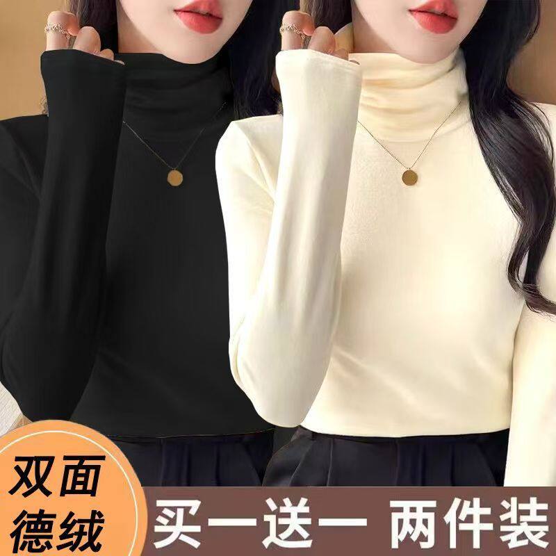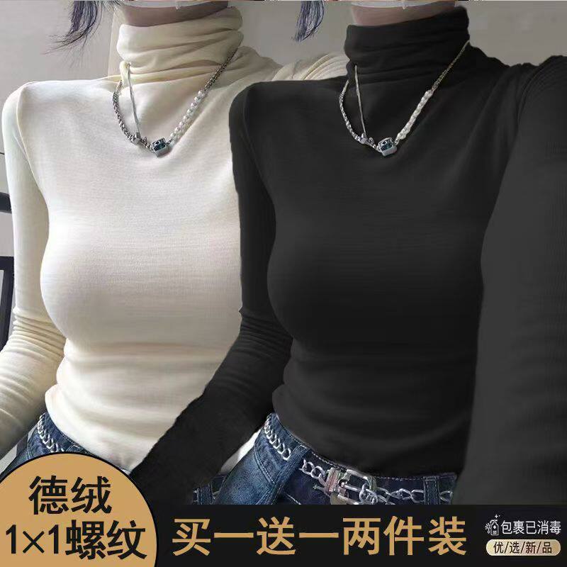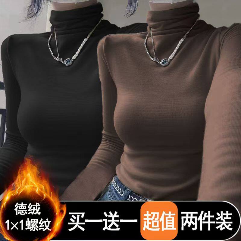 美式德绒高领打底衫女秋冬加绒修身t恤柔软韩版显瘦内搭洋气上衣F
