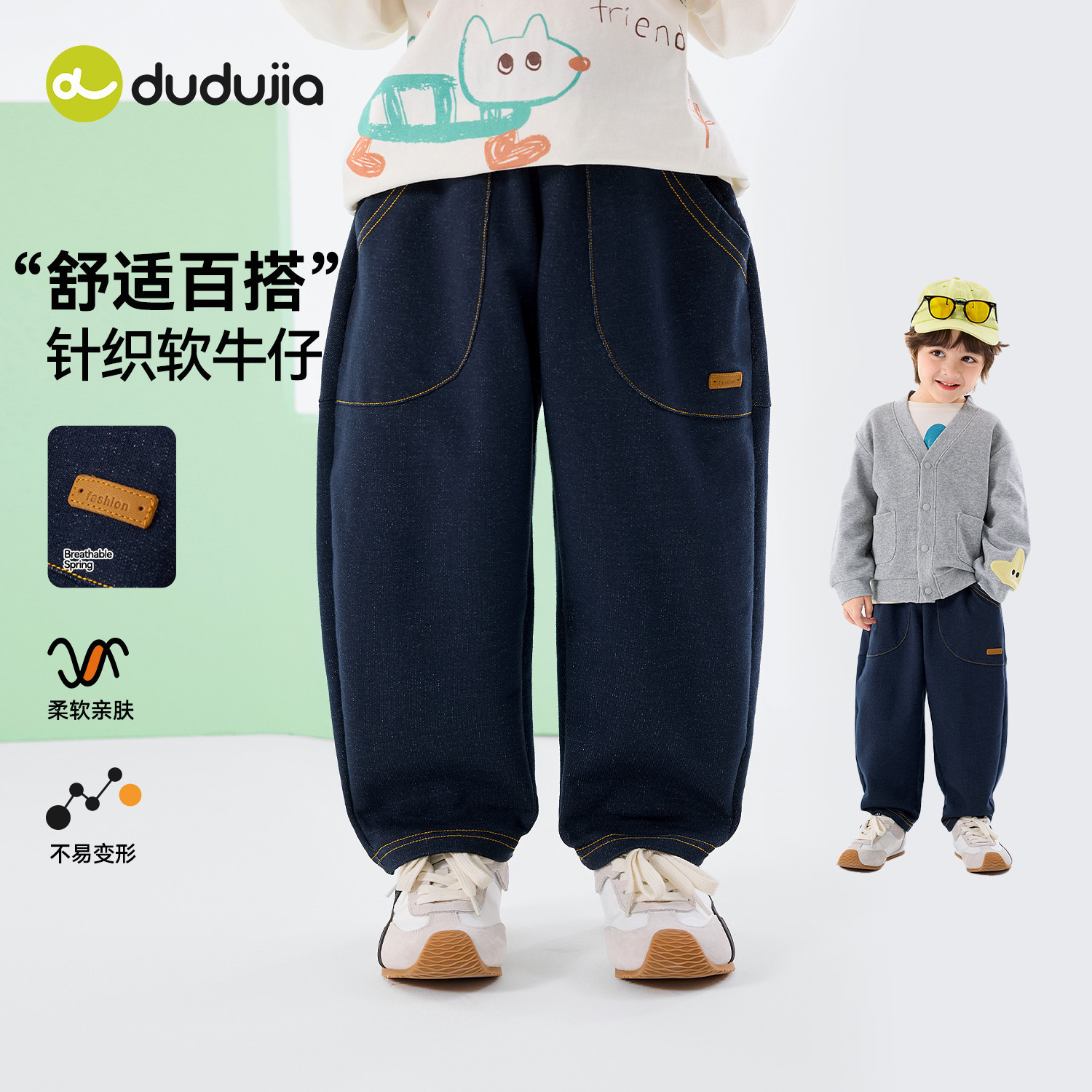soyo舍予良仓童装儿童加绒牛仔裤秋冬装柔软针织男童长裤女童裤子