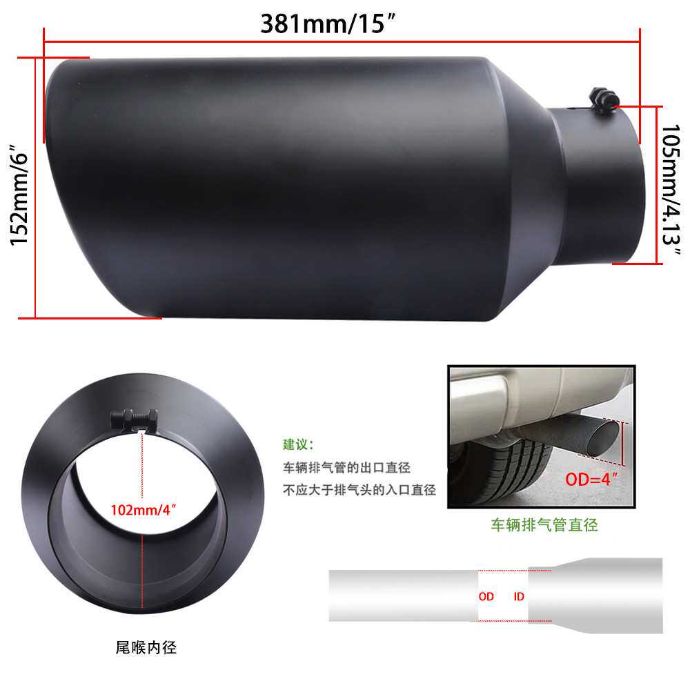 尾喉工厂15寸长不锈钢尾喉卷边烤黑尾喉柴油车皮卡车排气管消声器