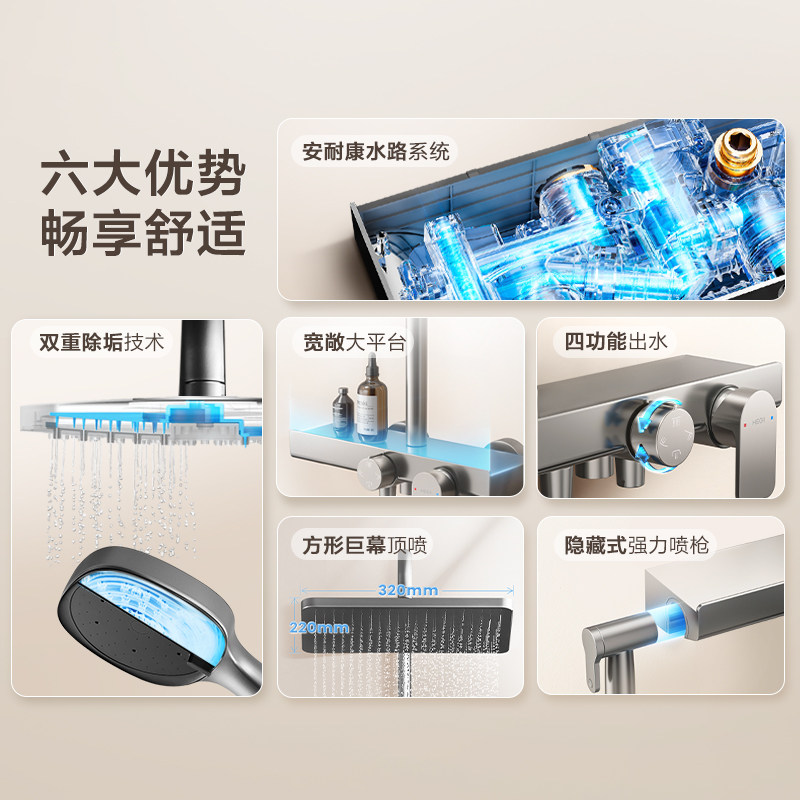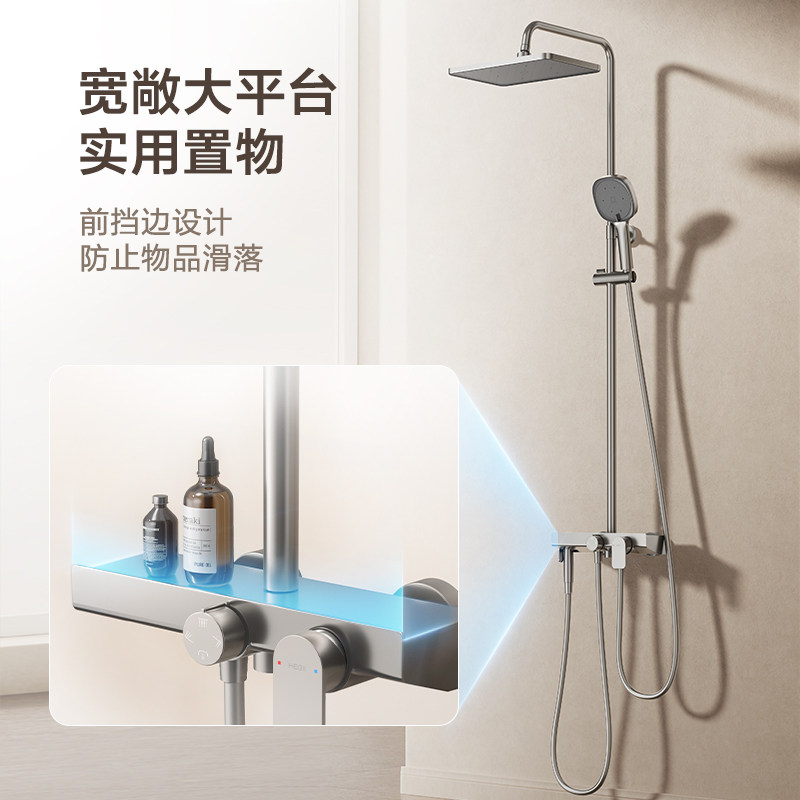 恒洁淋浴花洒套装家用明装喷枪增压卫生间除垢淋浴器极简936-333