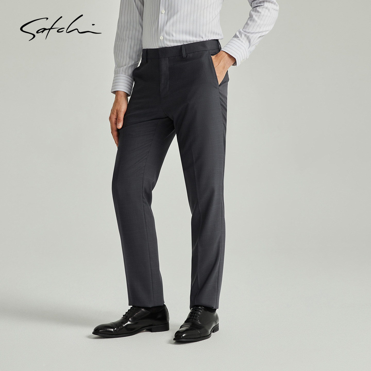 SATCHI沙驰男装男士西裤春季新款高端商务格纹婚礼职业通勤长裤子