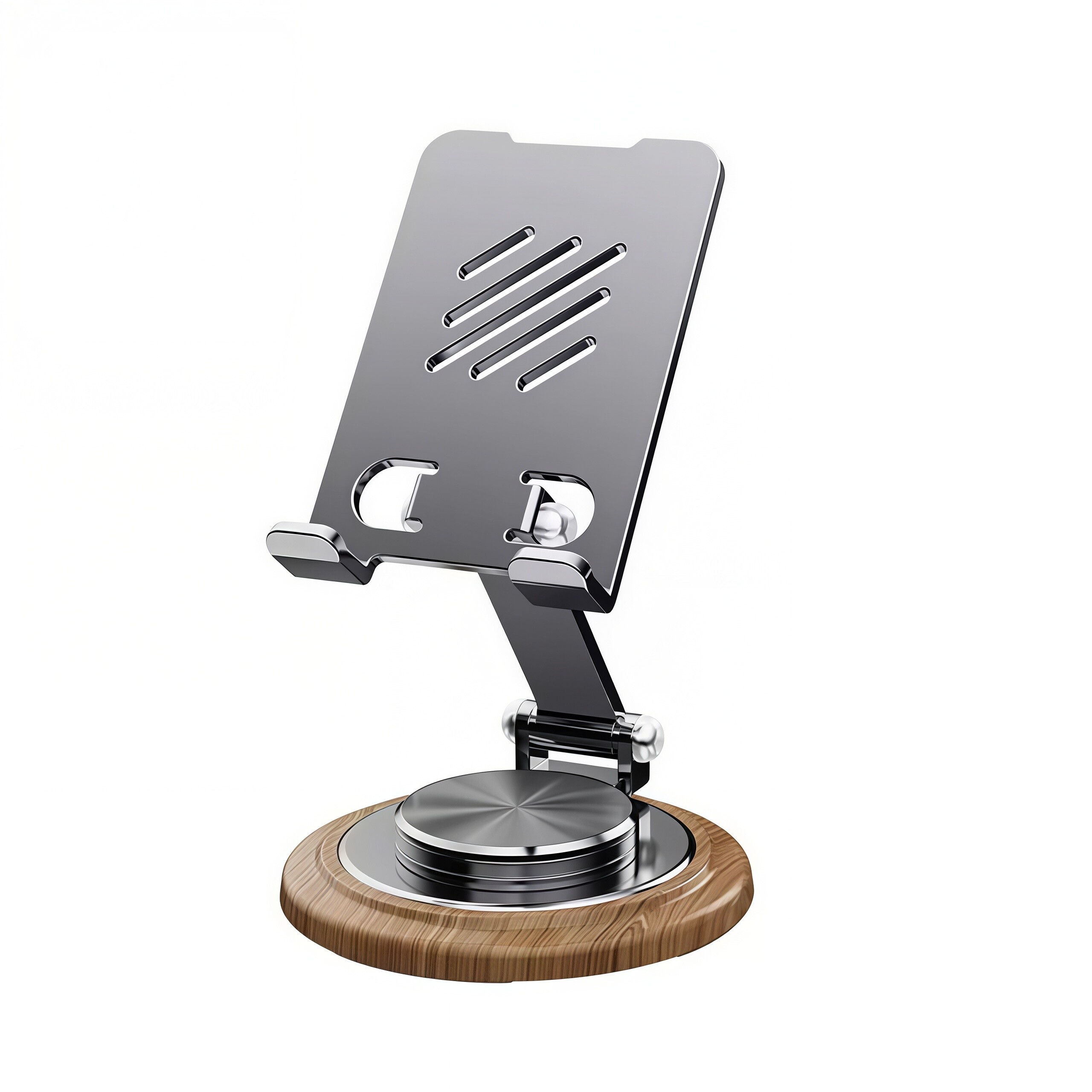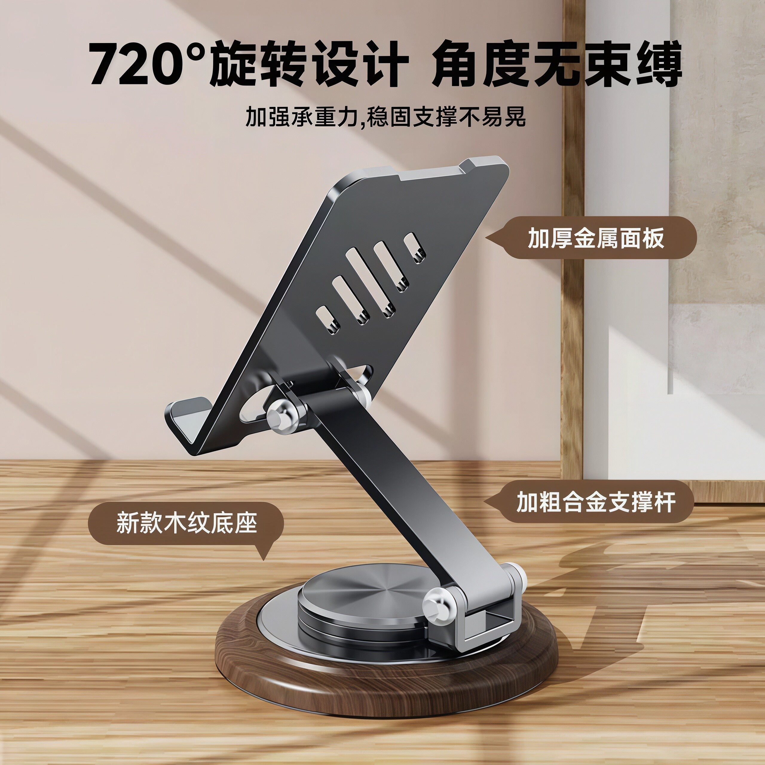 2026新款手机支架桌面懒人平板电脑支撑架可旋转折叠手机架ipad支撑架子金属旋转手机架支架便携胡桃木纹底座
