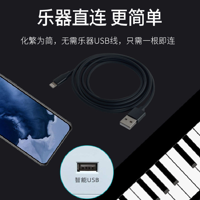 适用usb海伦智能钢琴midi数据线 OTG手机IPAD连链接线IN苹果TYPEC