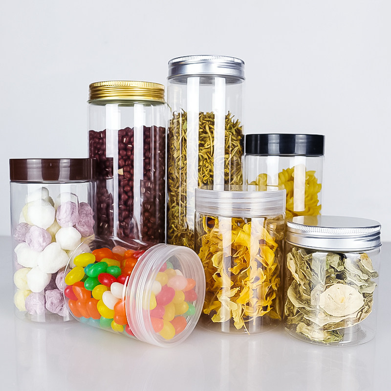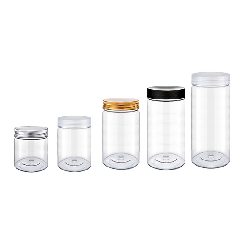 75口径商用黑色磨砂盖食品级透明密封塑料包装瓶杂粮食品储物罐子
