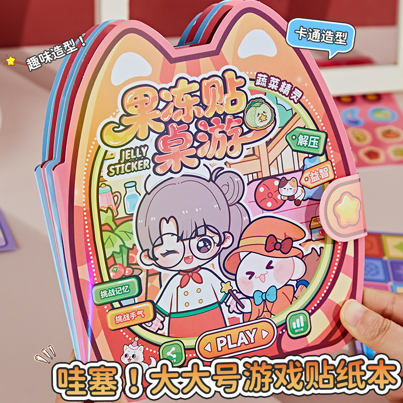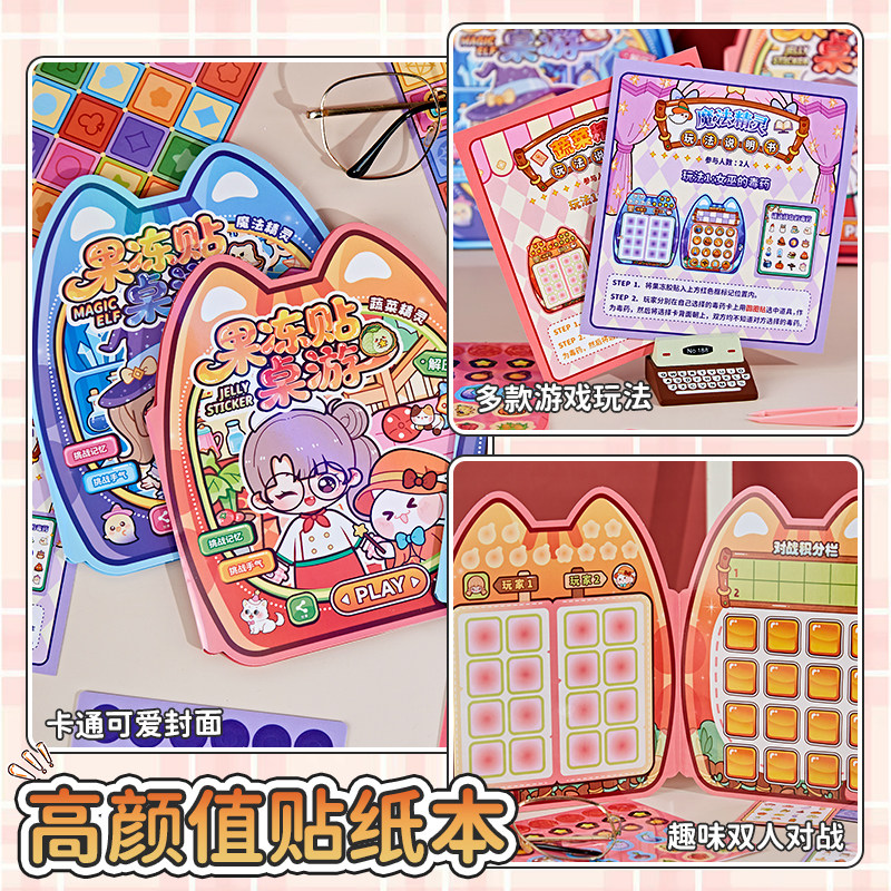 萌崽新款学霸学渣果冻贴纸安静书儿童免裁剪手工粘贴DIY女孩趣味玩具
