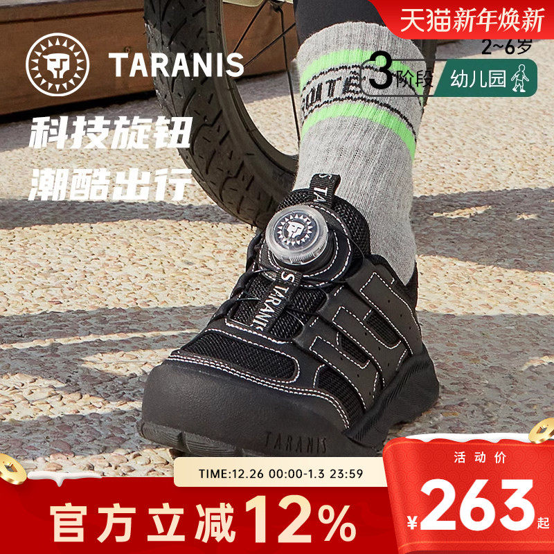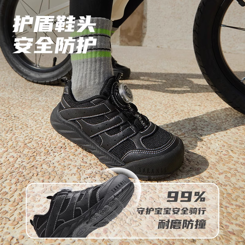 泰兰尼斯童鞋春秋新款旋钮运动鞋男童透气儿童平衡车鞋户外跑步鞋
