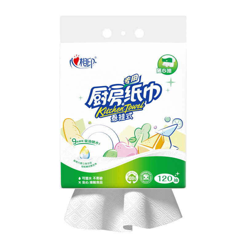 心相印厨房纸巾悬挂抽取式120抽2层吸油吸水纸一次性底部抽料理纸