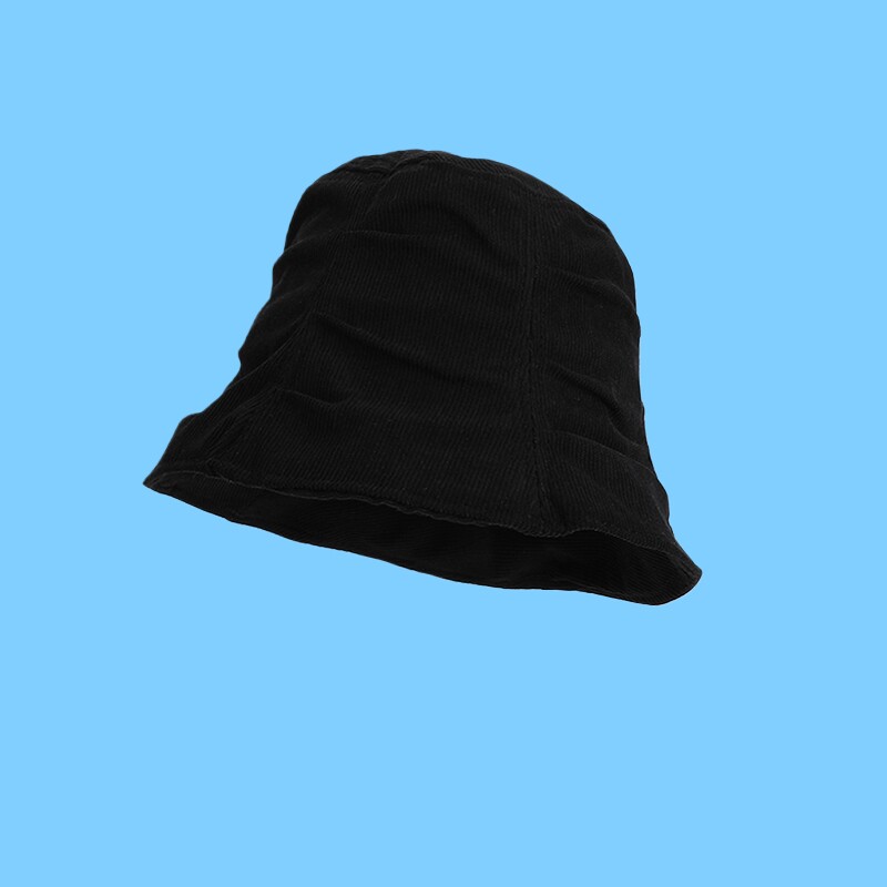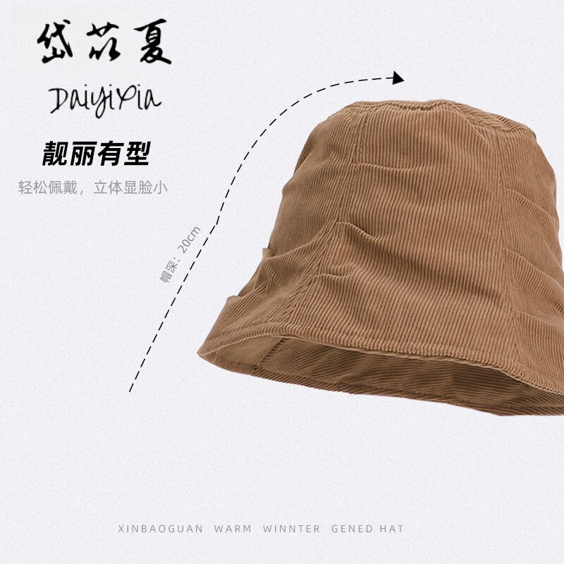 灯芯绒帽子女渔夫帽大头围水桶帽时尚百搭盆帽冬季显脸小防风黑色