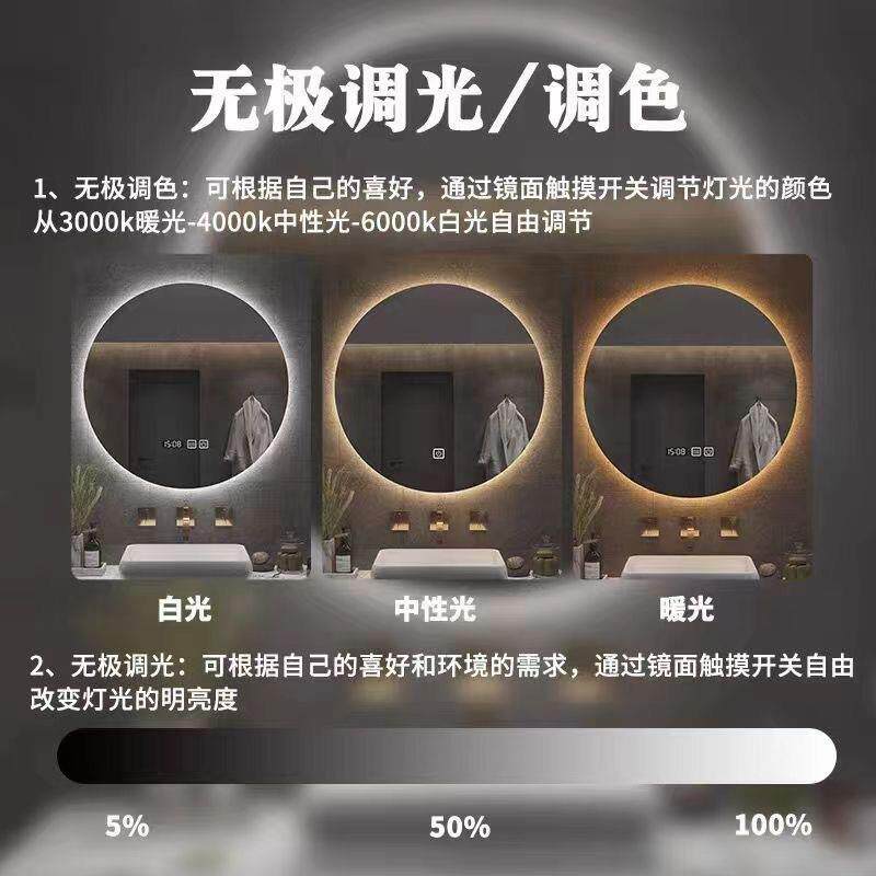 智能圆镜led浴室镜厕所挂墙壁挂防雾发光酒店卫生间带灯化妆镜子