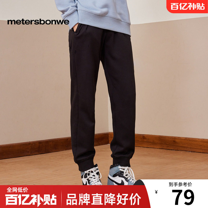 美特斯邦威男女款螺纹束脚刺绣简约休闲长裤秋冬新款加绒保暖下装