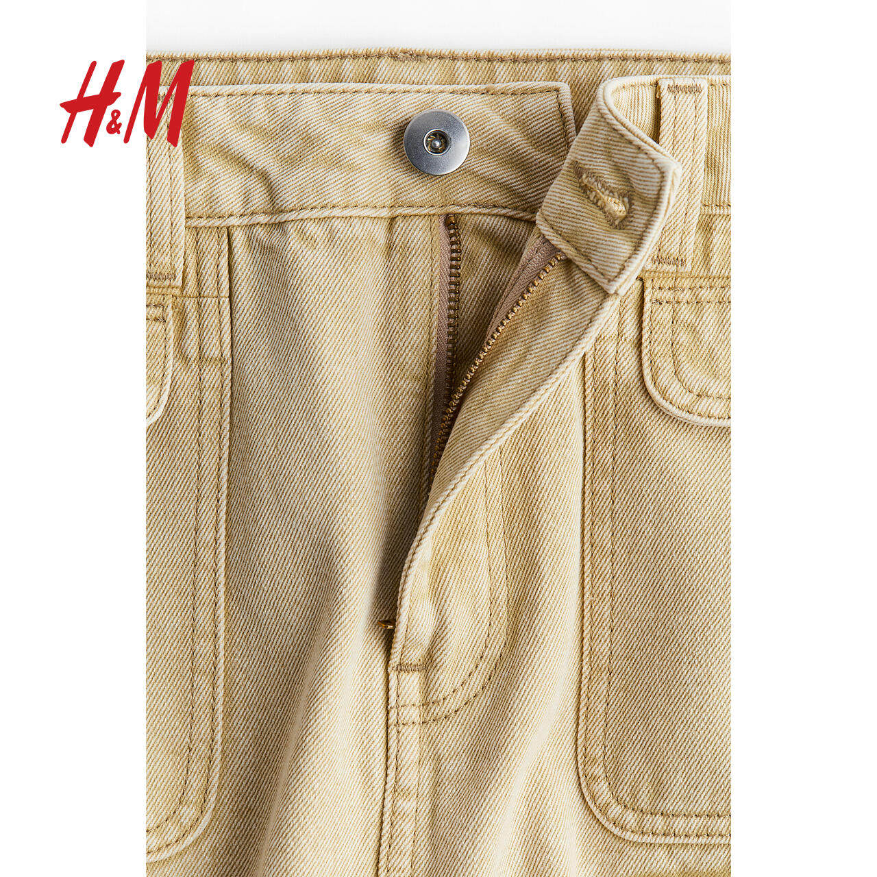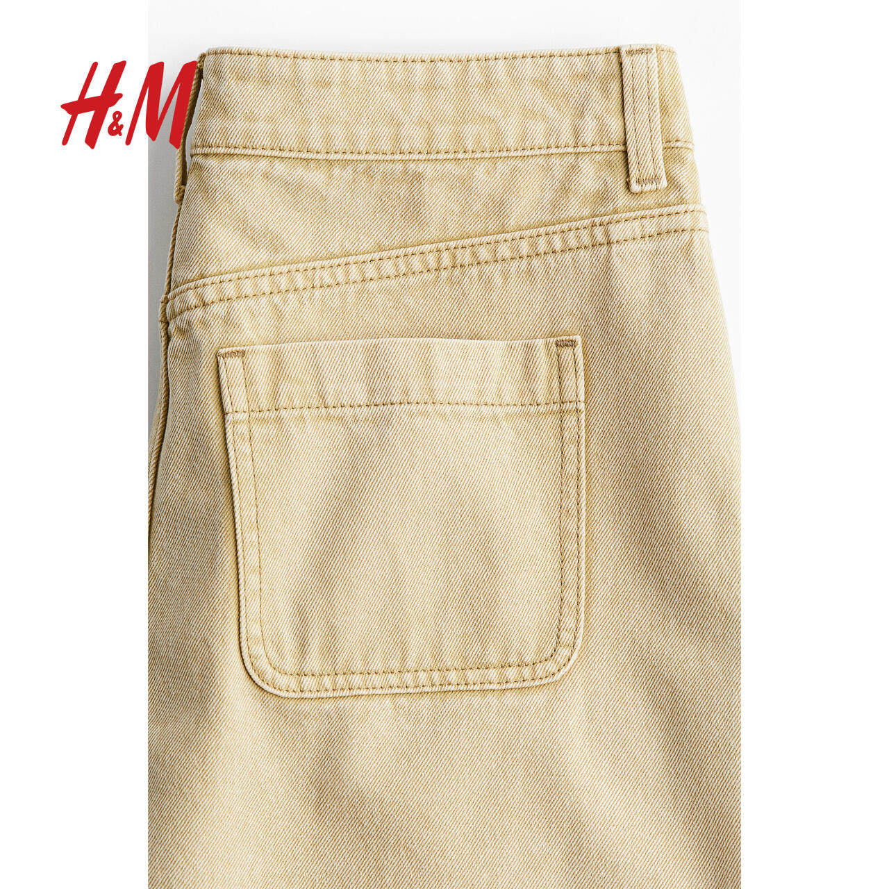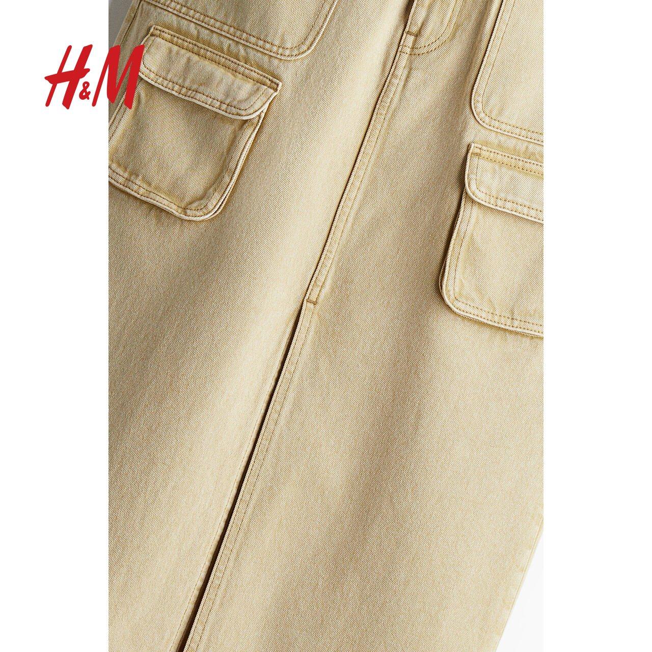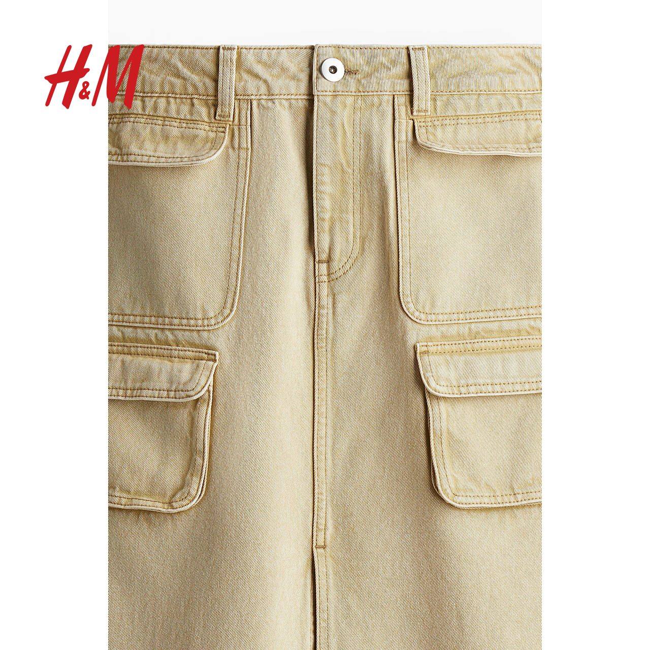 HM女装半身裙冬季牛仔布宽松自然腰高开叉A字长裙1230524
