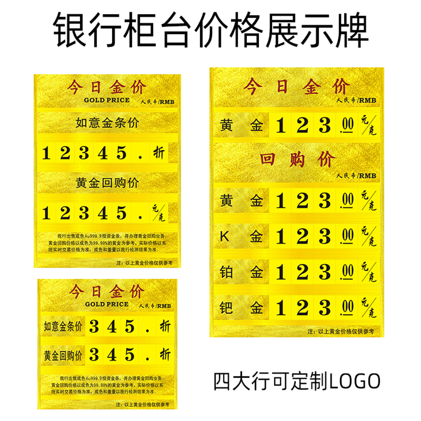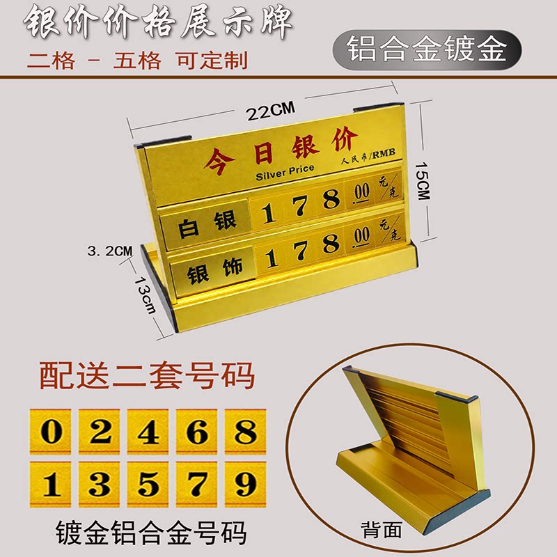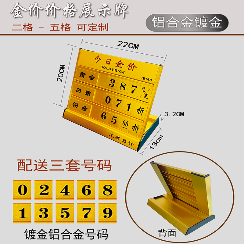 今日金价牌定制黄金价格展示牌珠宝店柜台黄金白银公示牌钨钢价银行L型桌摆足银铂金足银K钯金黄金回收价格牌