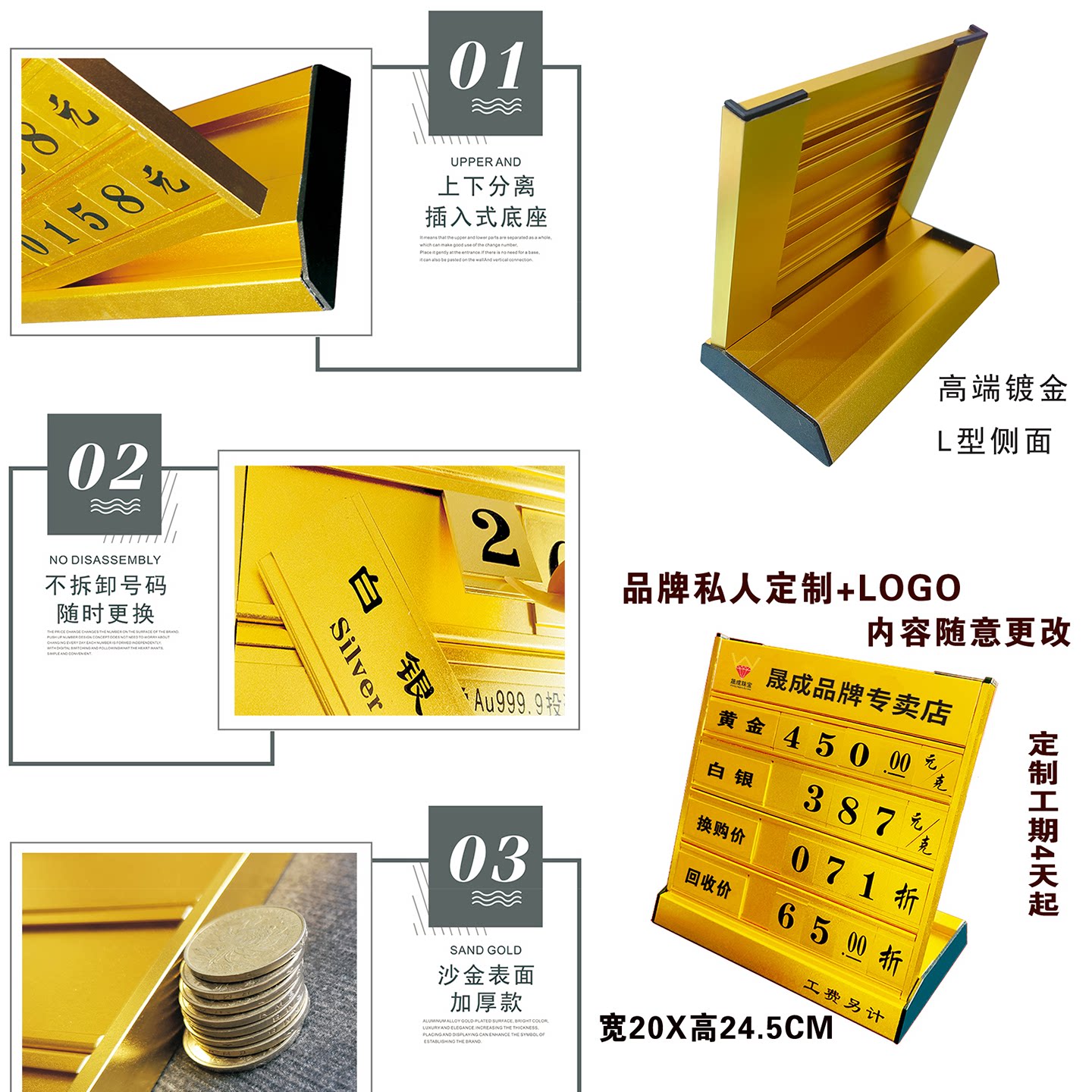 镀金沙金高端款 可定制金价牌内容 一个起订