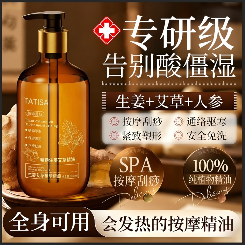 生姜艾草发热按摩精油全身身体通经络开背推背刮痧正品官方旗舰店
