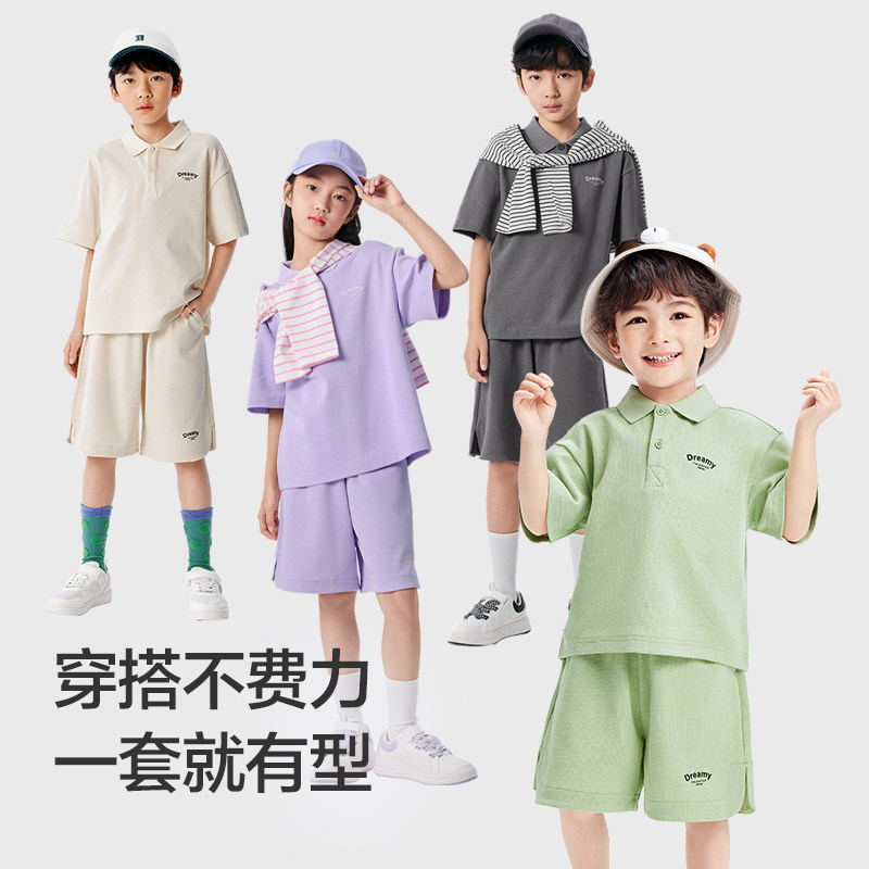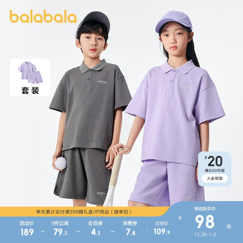 巴拉巴拉儿童短袖套装男女童两件套小大童夏polo衫亲子童装亲子装