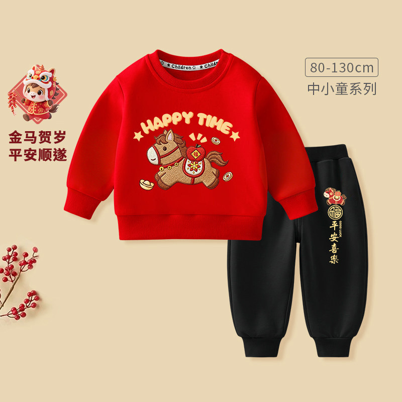 婴儿冬季周岁服套装儿童过年衣服男童宝宝拜年服卫衣新年加绒薄款