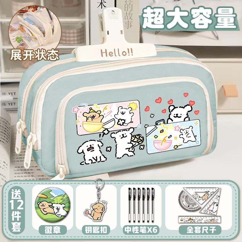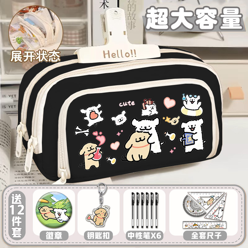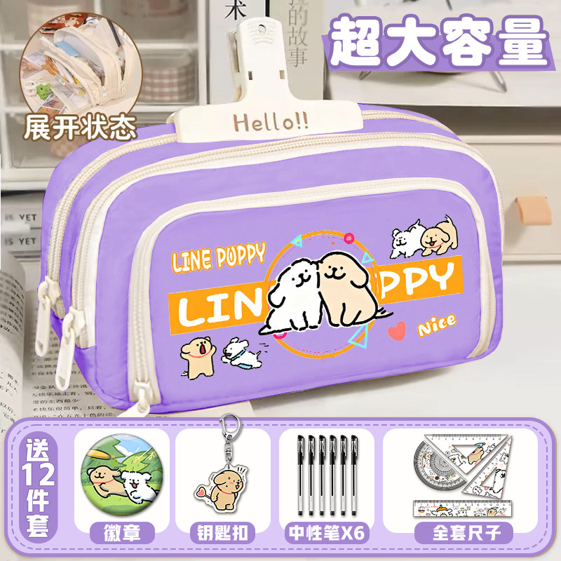 线条小狗可爱卡通笔袋高颜值联名周边大容量小学初中生男女文具盒