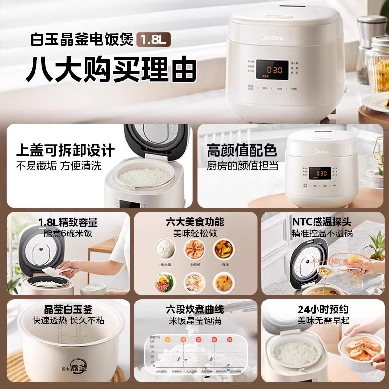 美的电饭煲家用1-2人迷你小型1.8L飞快宿舍多功能电饭锅官方正品