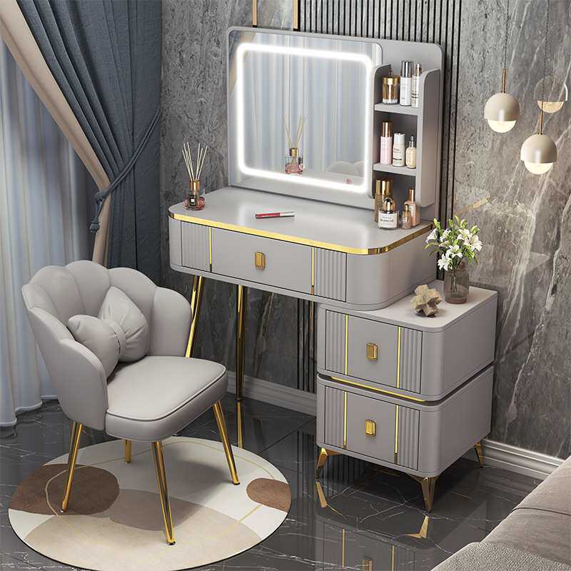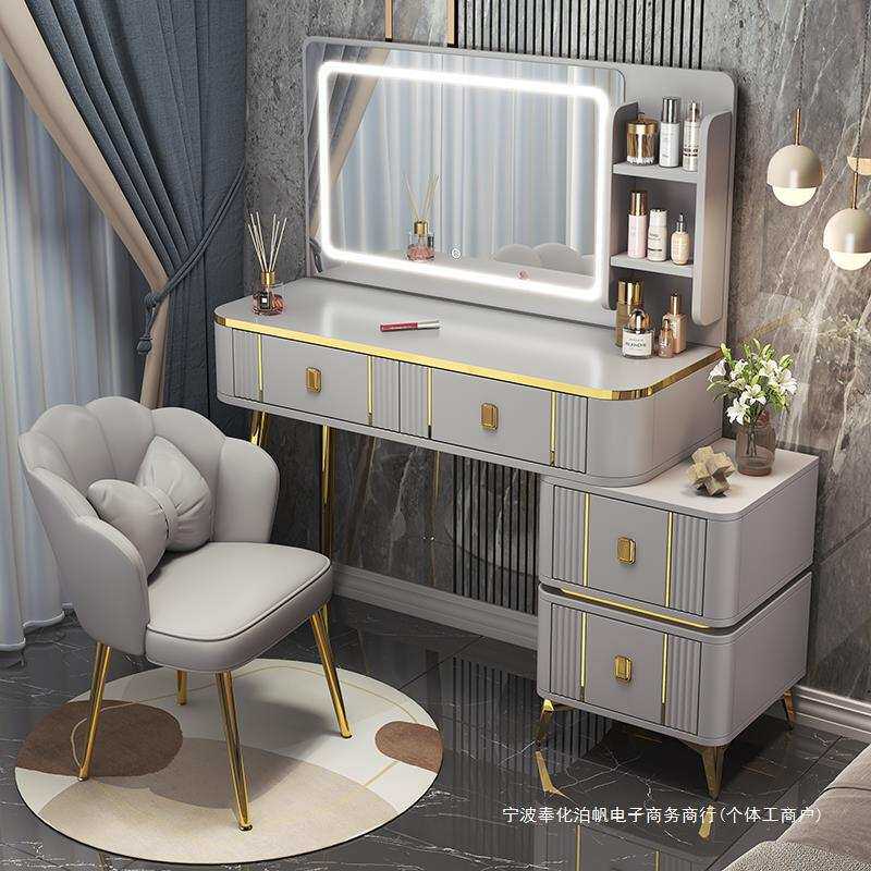 意式梳妆台卧室现代简约2024新款轻奢化妆桌床头书桌镜子斗柜一体