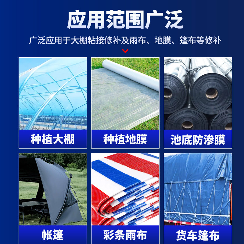 大棚膜修补专用胶水粘塑料布连接胶PO膜温室无滴膜防渗雨蔬菜种植软薄膜篷布遮阳棚修补剂尼龙布防水胶