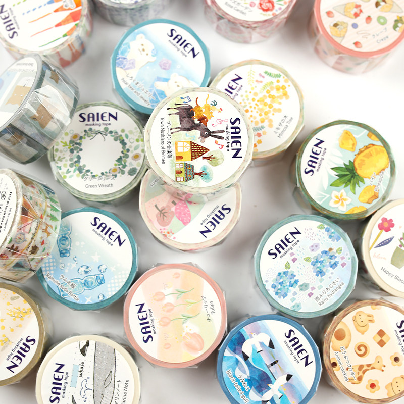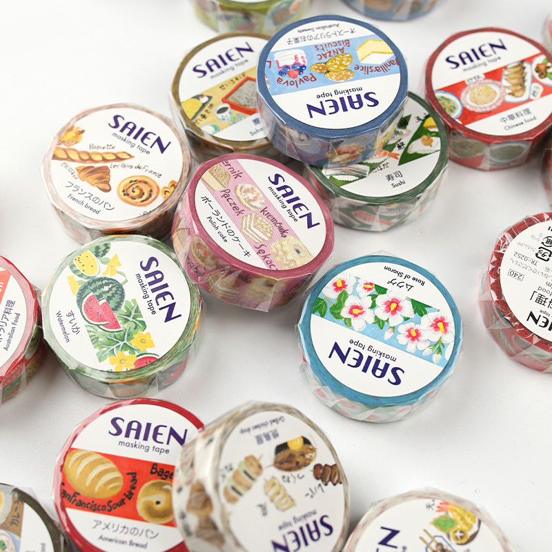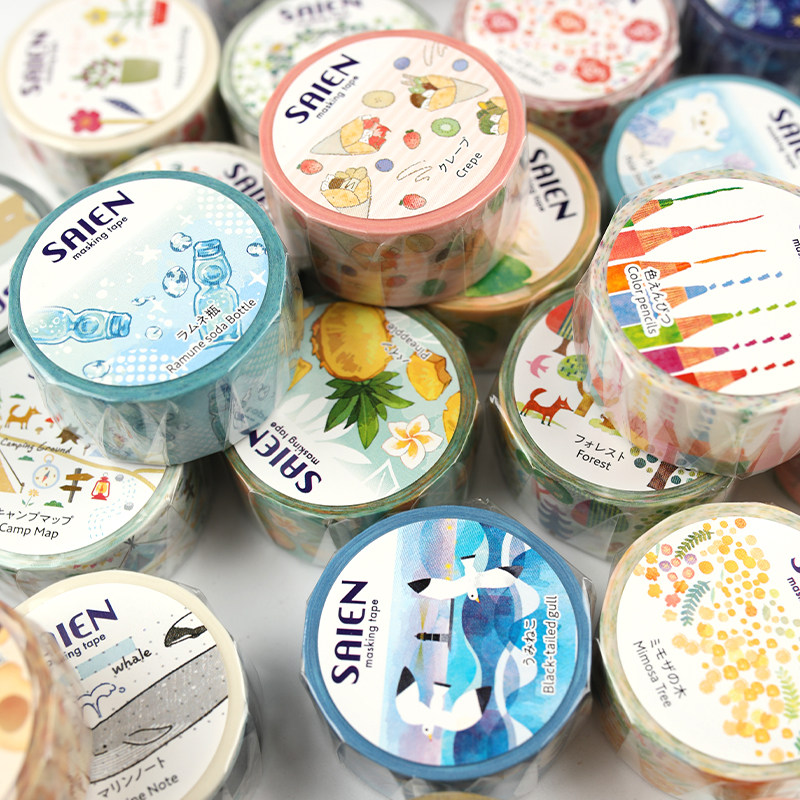 日本SAIEN热门款胶带 冰淇淋 金鱼 蛋糕 可爱动物 手账胶带 整卷