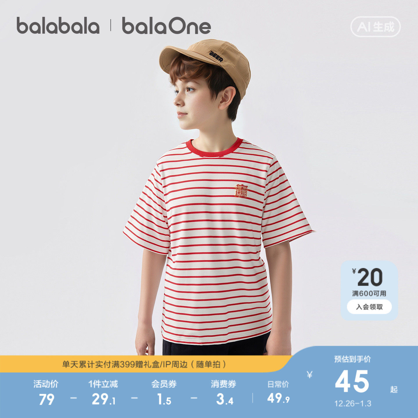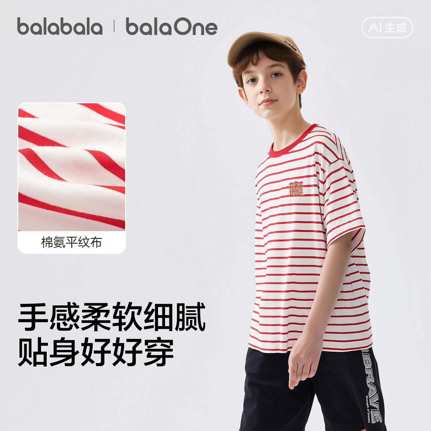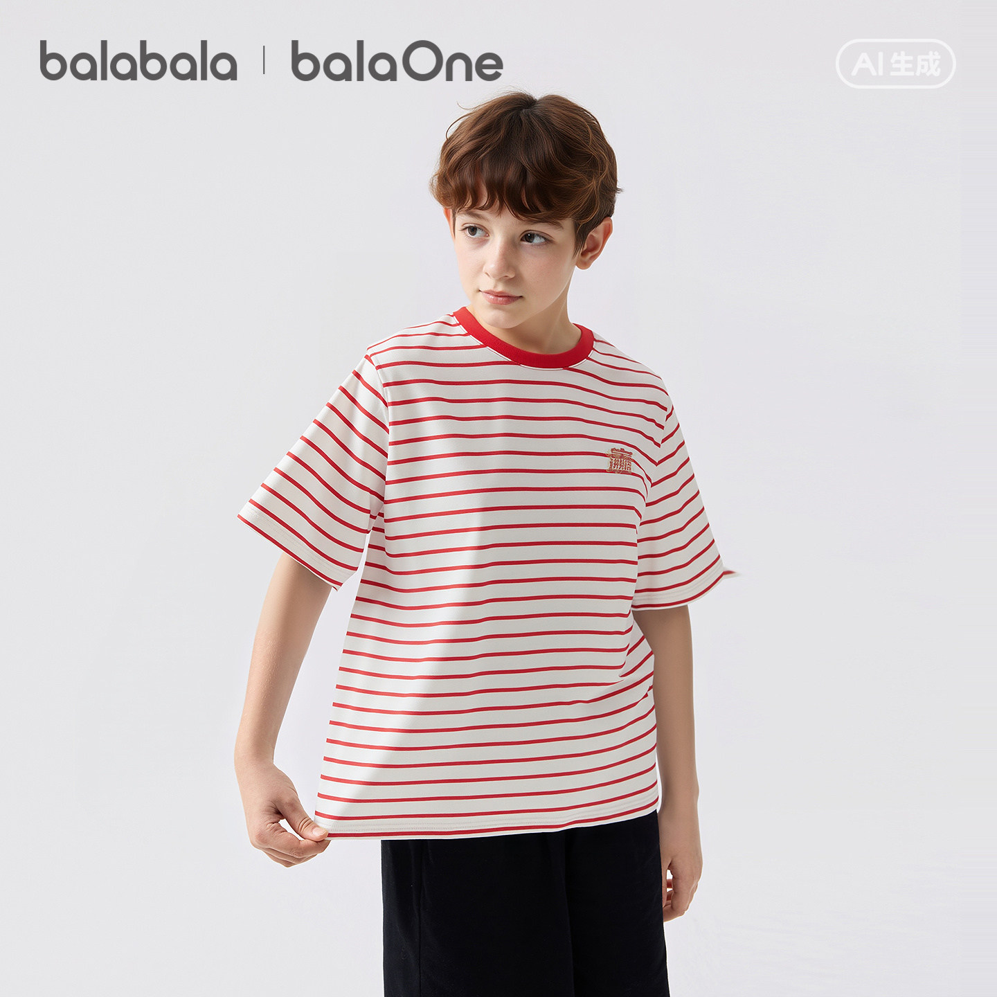【balaOne】巴拉巴拉儿童短袖t恤男童春秋上衣女童内衣打底衫条纹