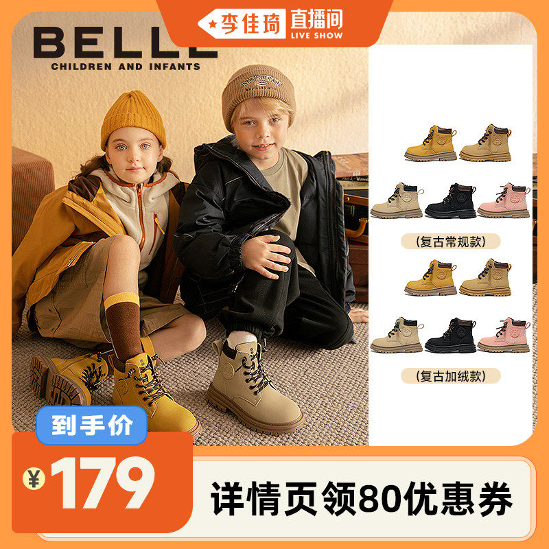 【李佳琦直播间】百丽童鞋儿童马丁靴冬季加绒工装靴宝宝大黄靴